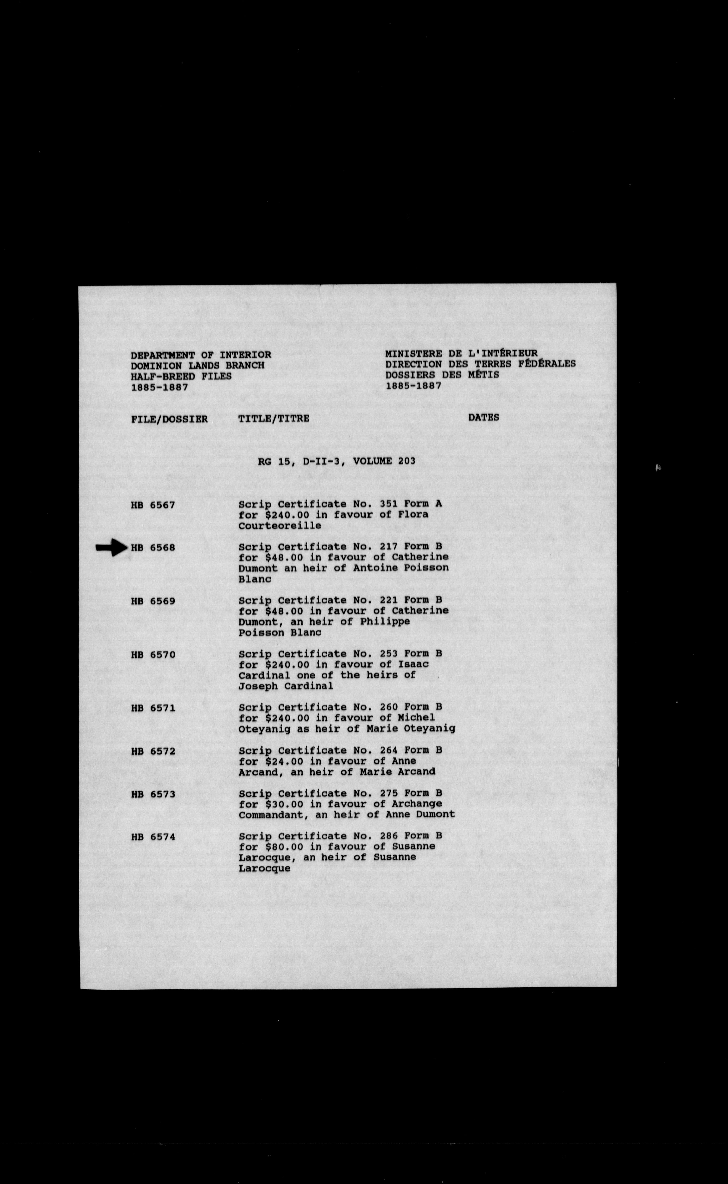 Dominion Lands Branch : Half-Breed files (1885-1887) - 12154