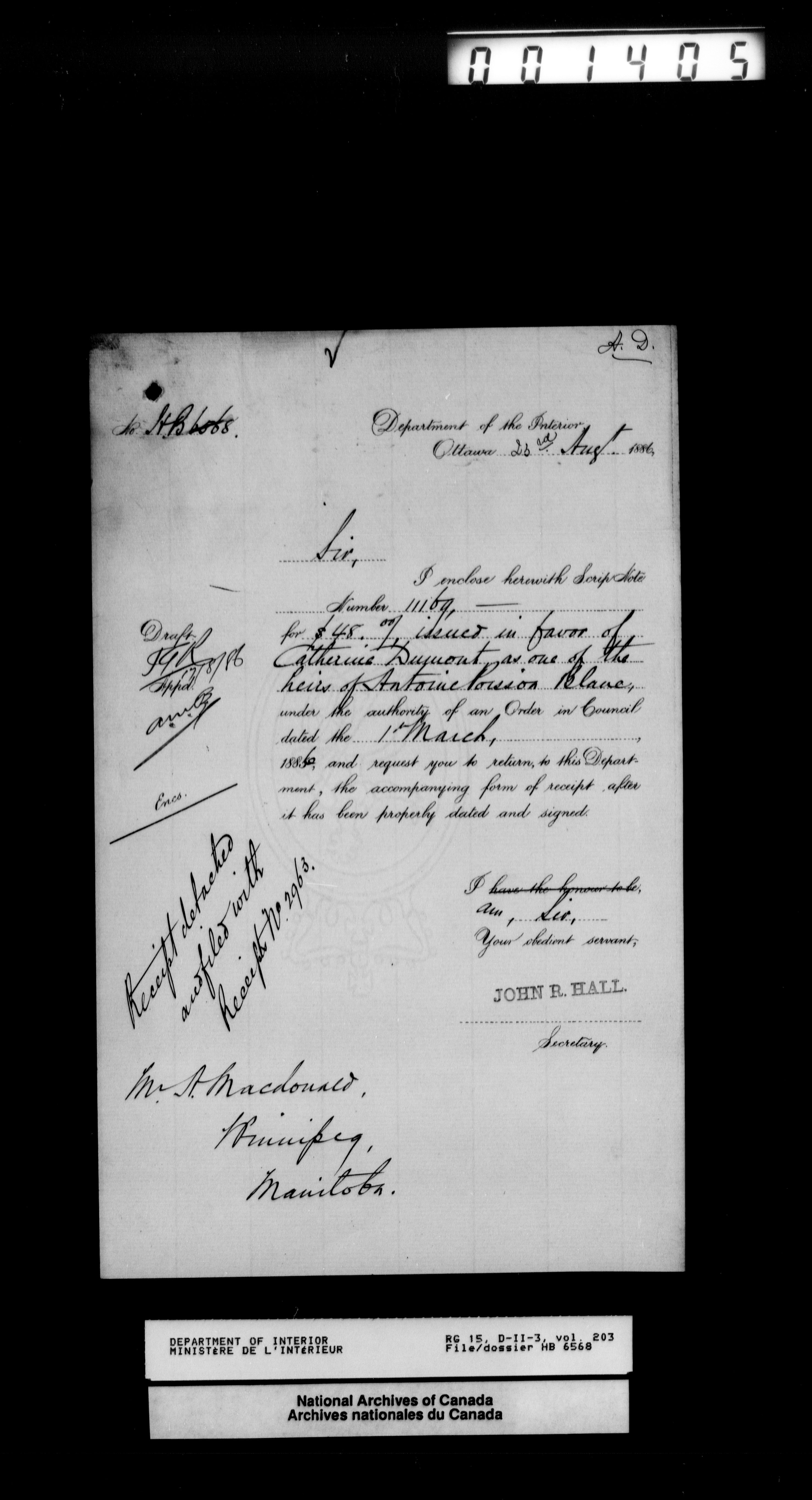Dominion Lands Branch : Half-Breed files (1885-1887) - 12154