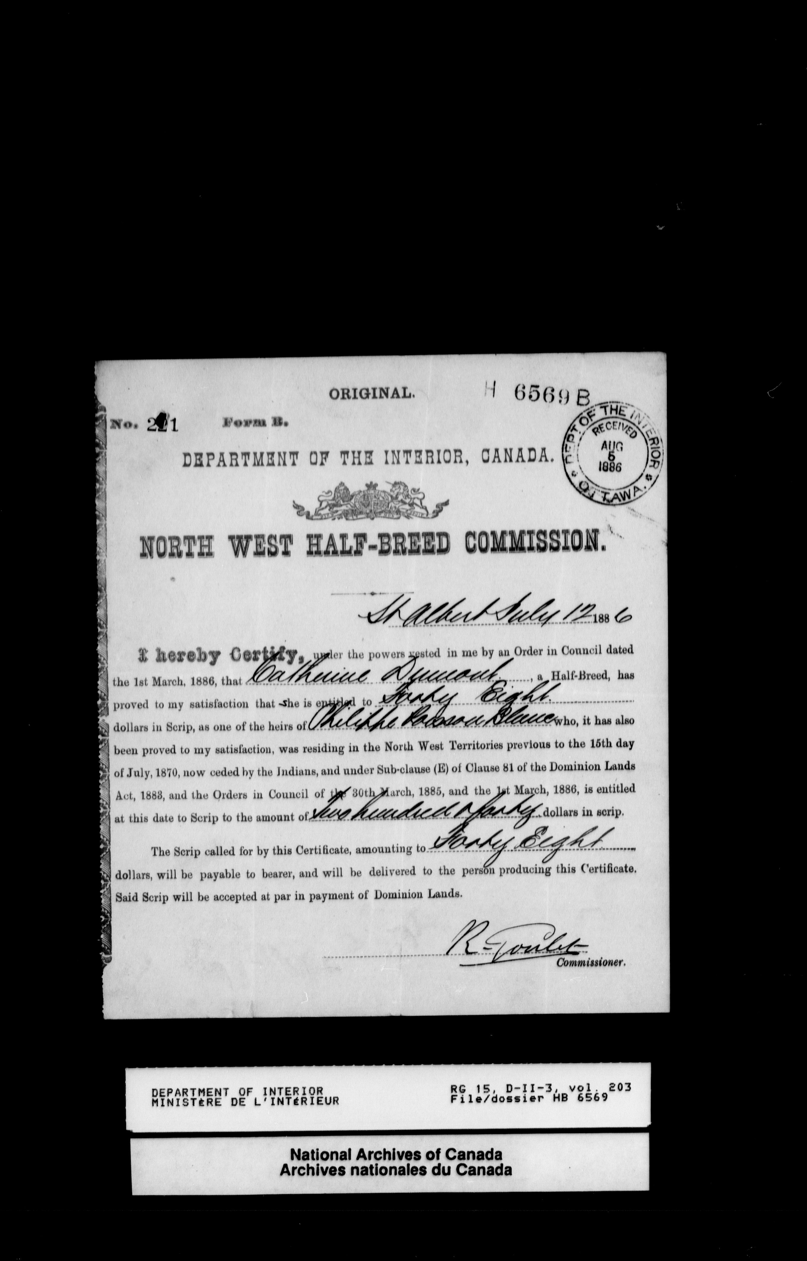 Dominion Lands Branch : Half-Breed files (1885-1887) - 12154