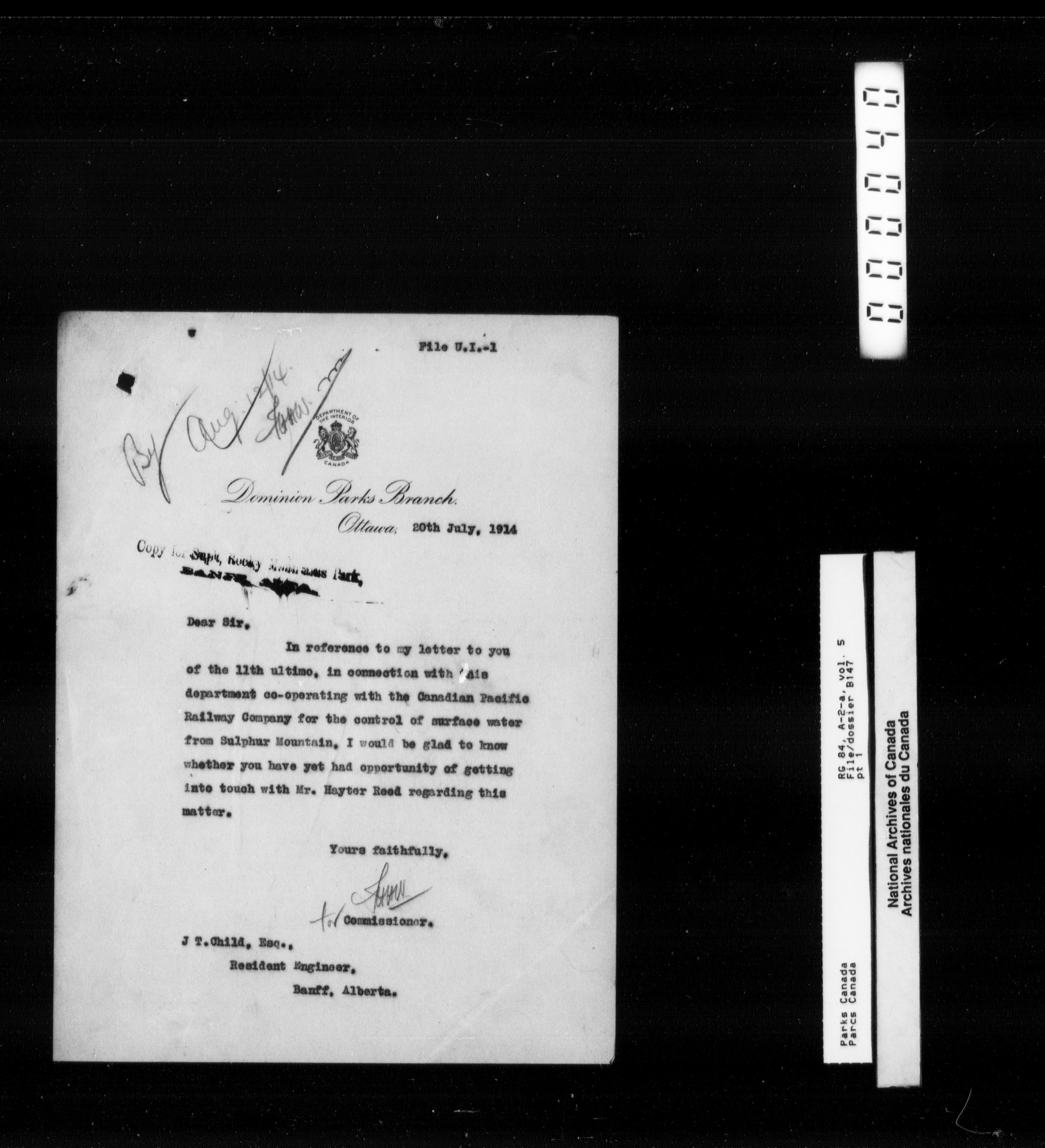 Department of Canadian Heritage, Canadian Parks Service : Park/subject classification system : T-12167