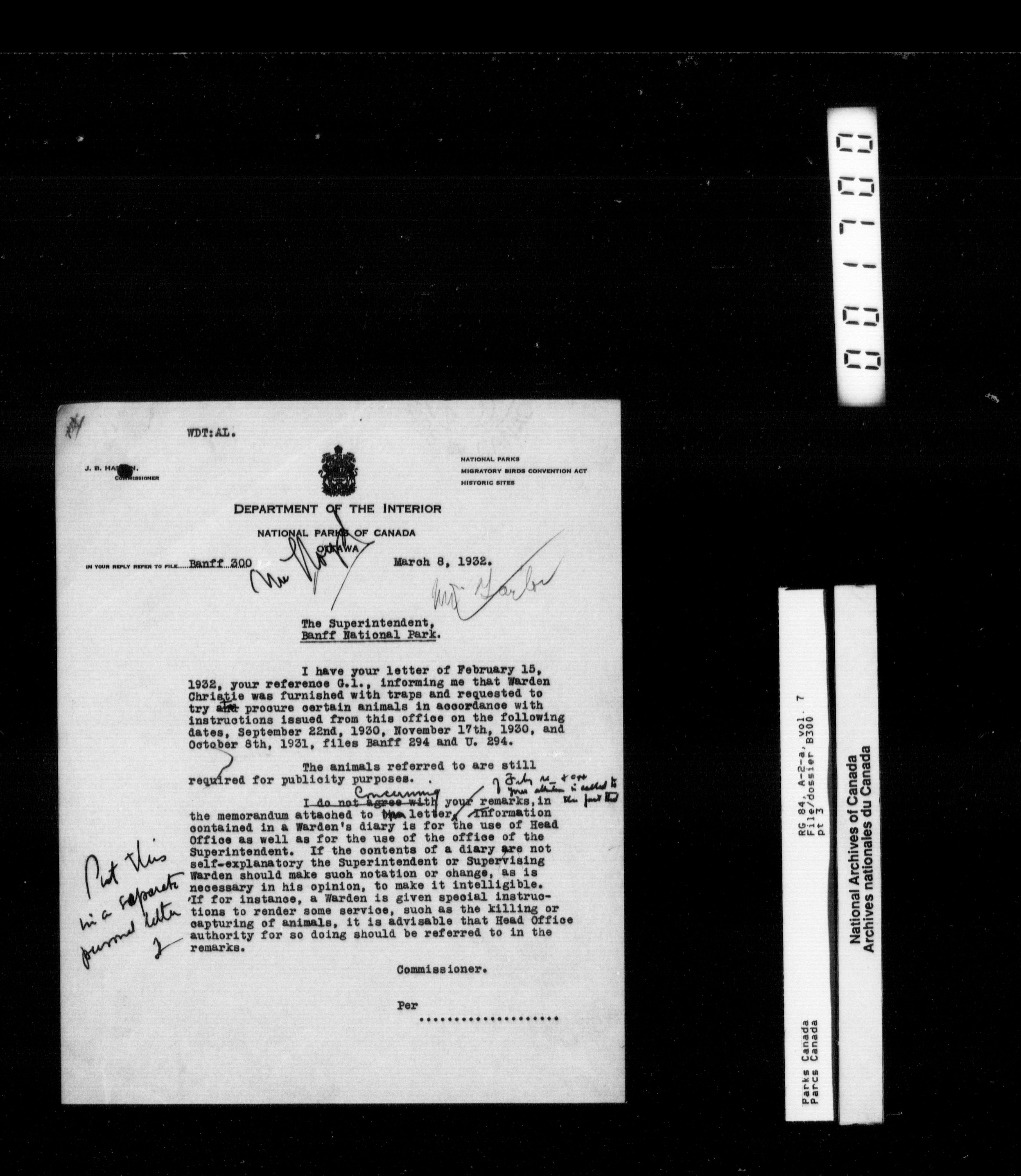 Department of Canadian Heritage, Canadian Parks Service : Park/subject classification system : T-12168