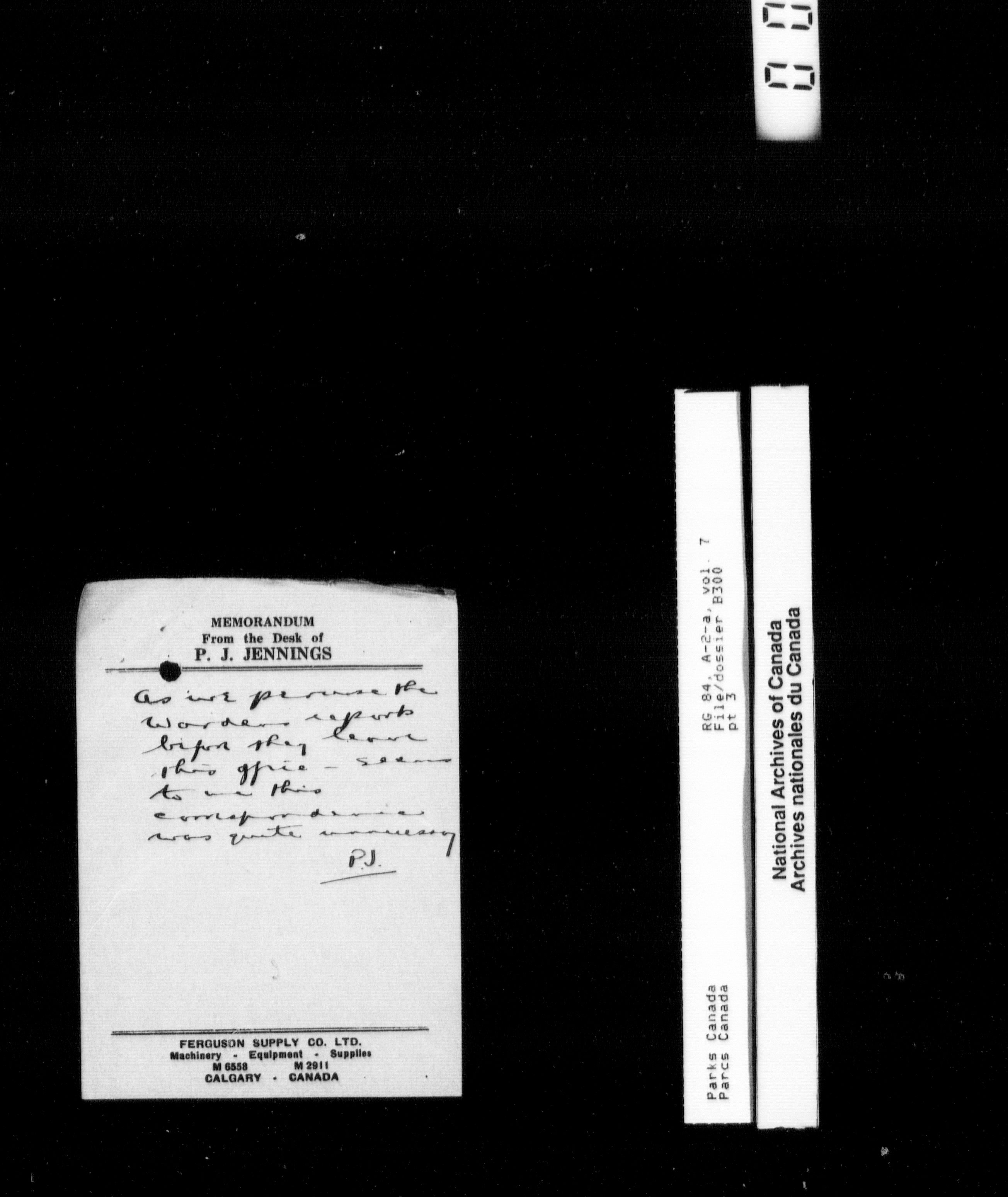 Department of Canadian Heritage, Canadian Parks Service : Park/subject classification system : T-12168