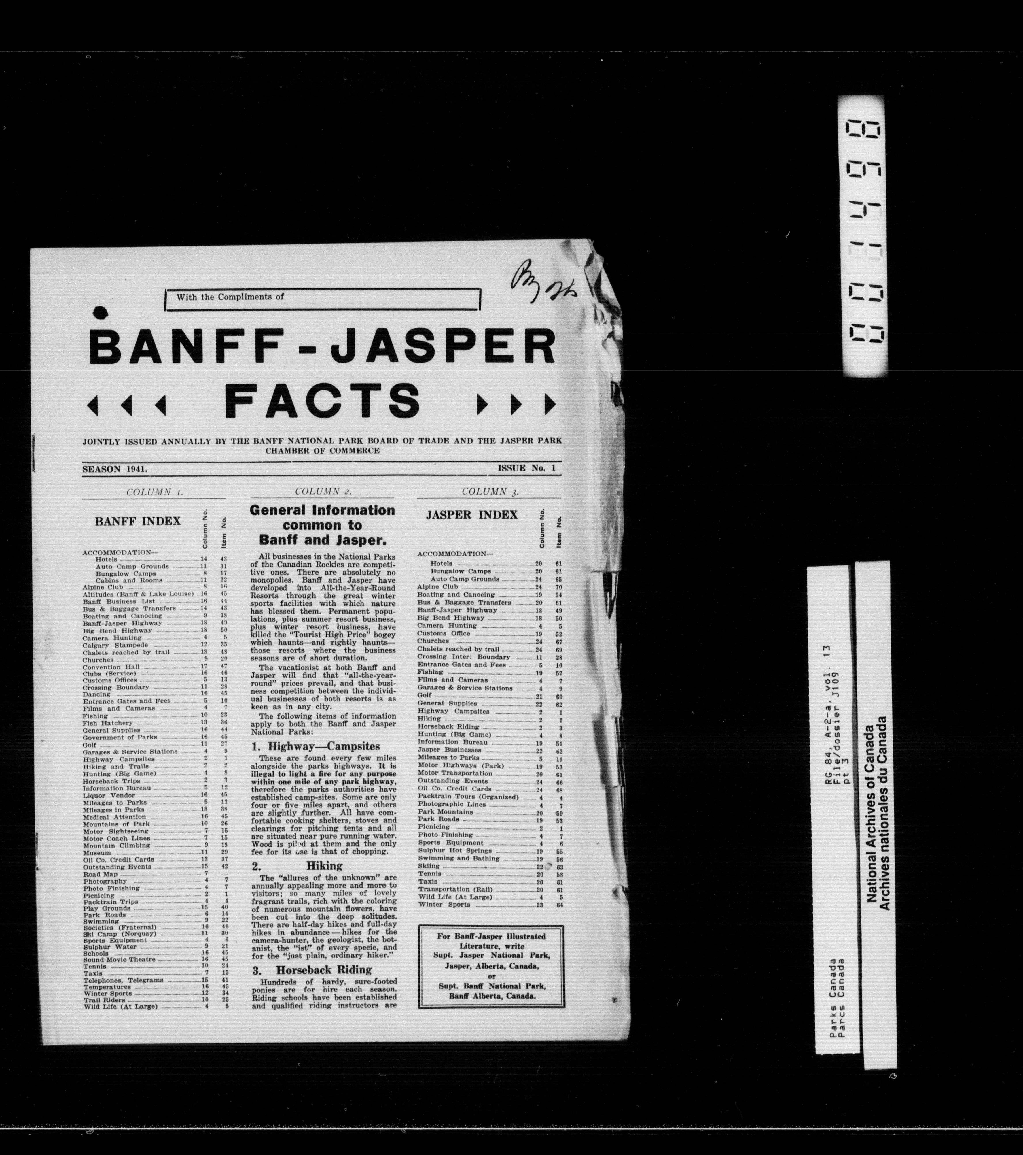 Department of Canadian Heritage, Canadian Parks Service : Park/subject classification system : T-12174