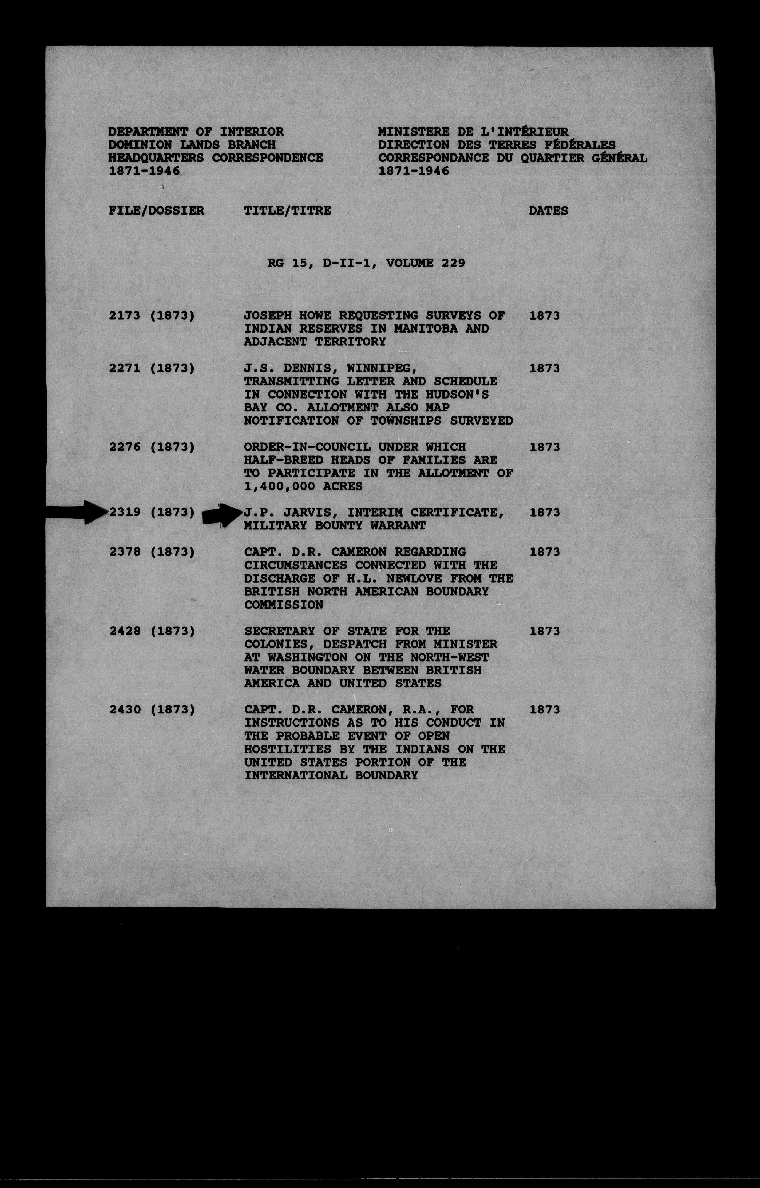 Central registry subject files created by the Dominion Lands Branch - 12178