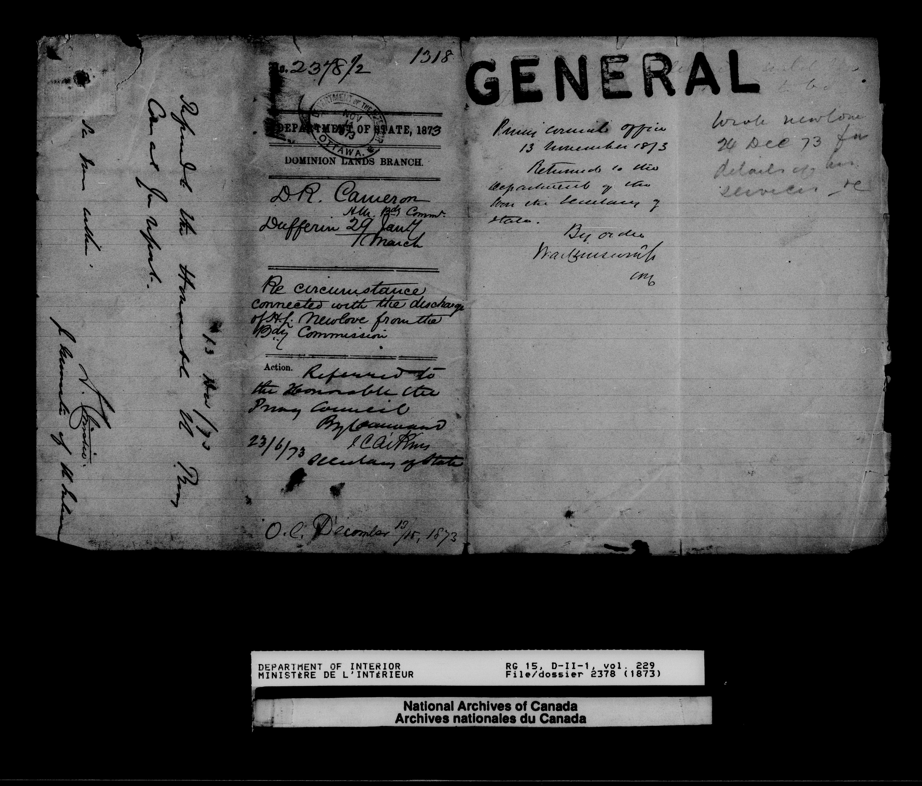 Central registry subject files created by the Dominion Lands Branch - 12178