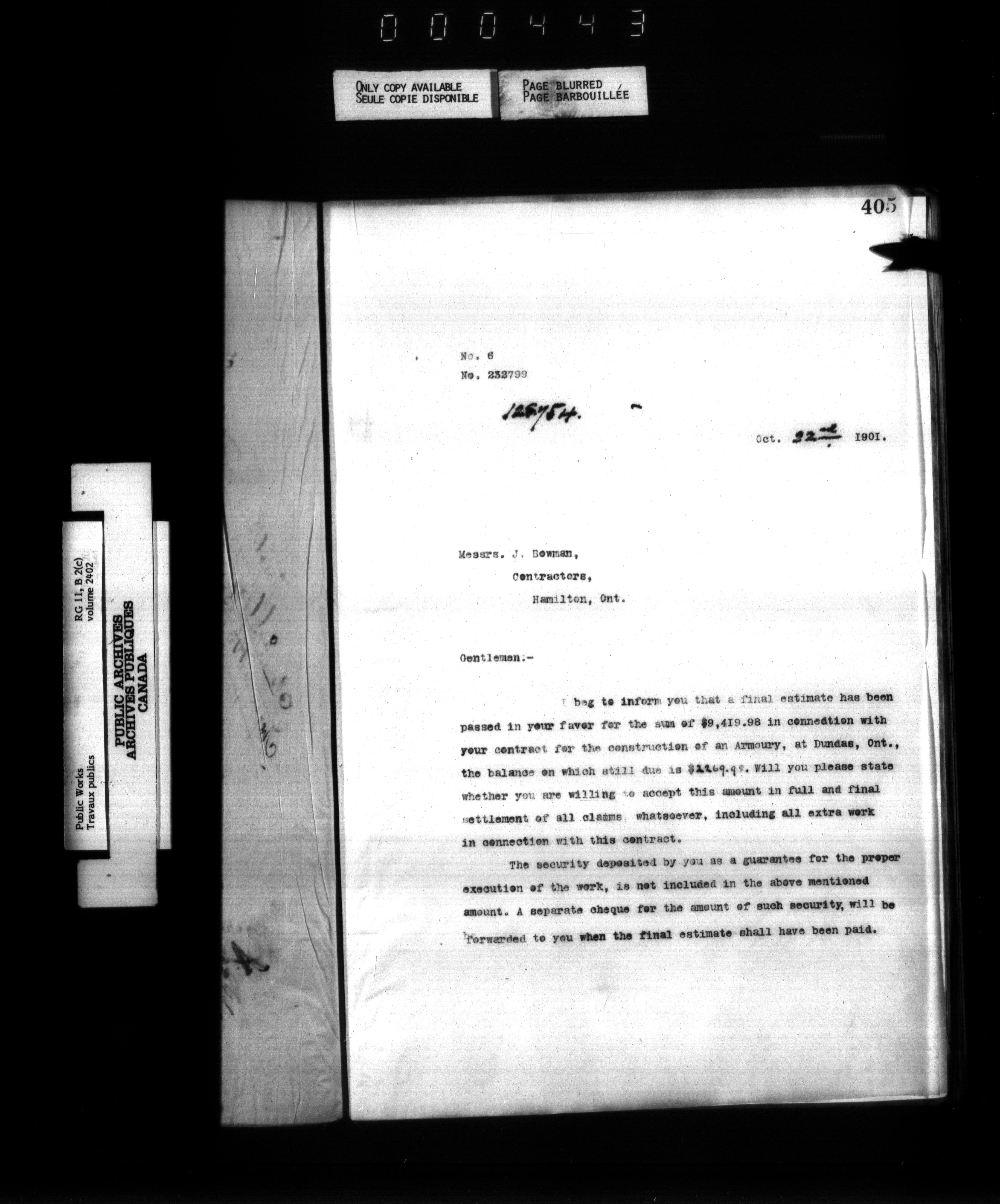 Department of Public Works : Outgoing Numbered Correspondence, 1879-1912 - 1232