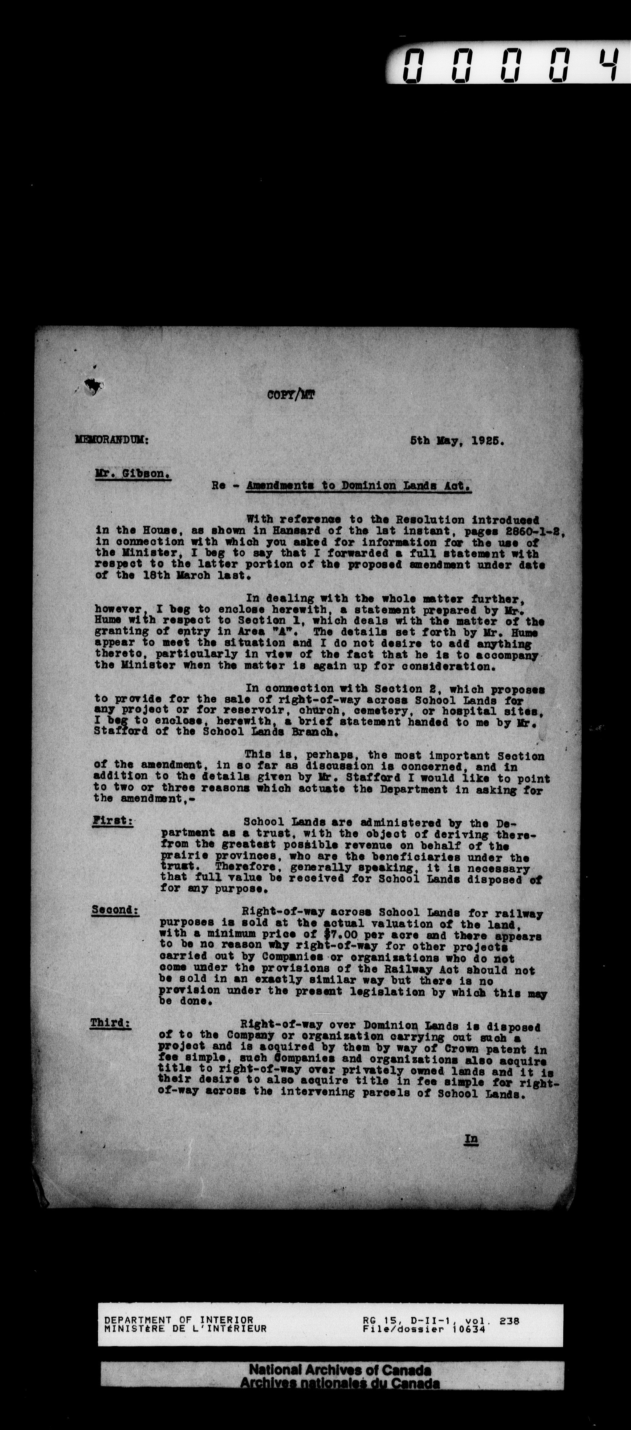 Central registry subject files created by the Dominion Lands Branch - 12320