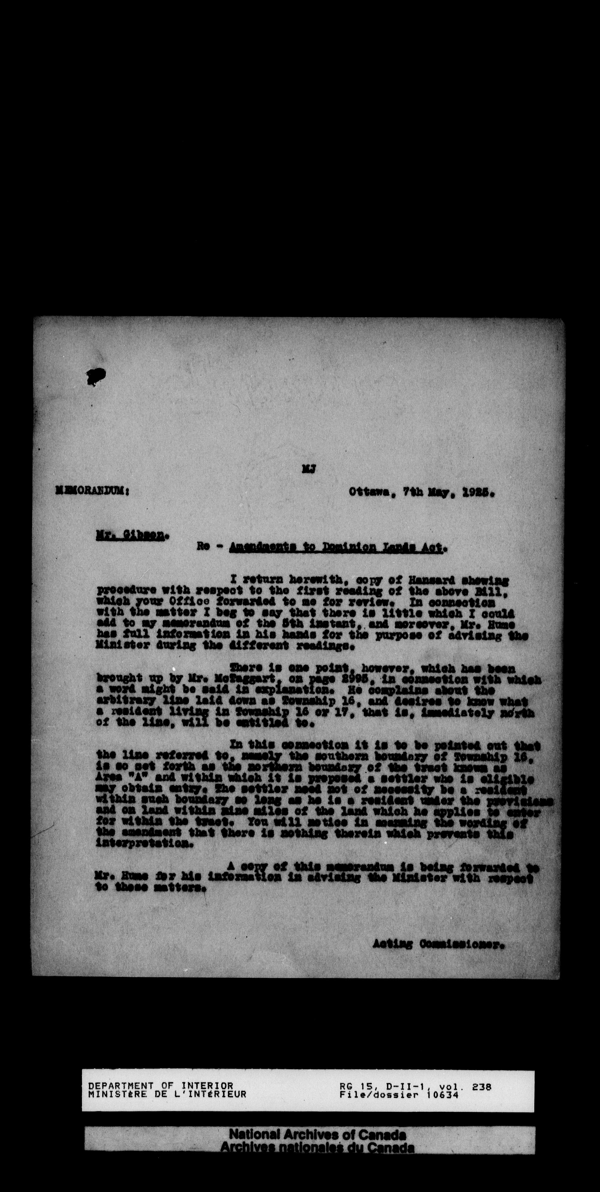 Central registry subject files created by the Dominion Lands Branch - 12320
