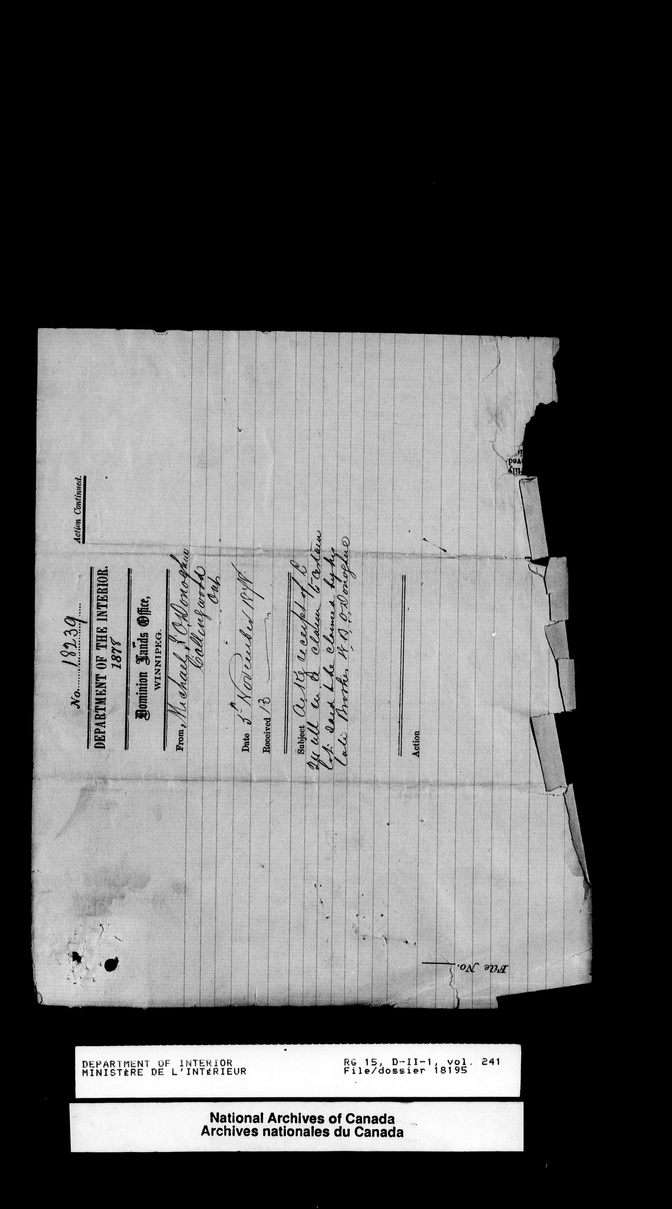 Central registry subject files created by the Dominion Lands Branch - T-12322