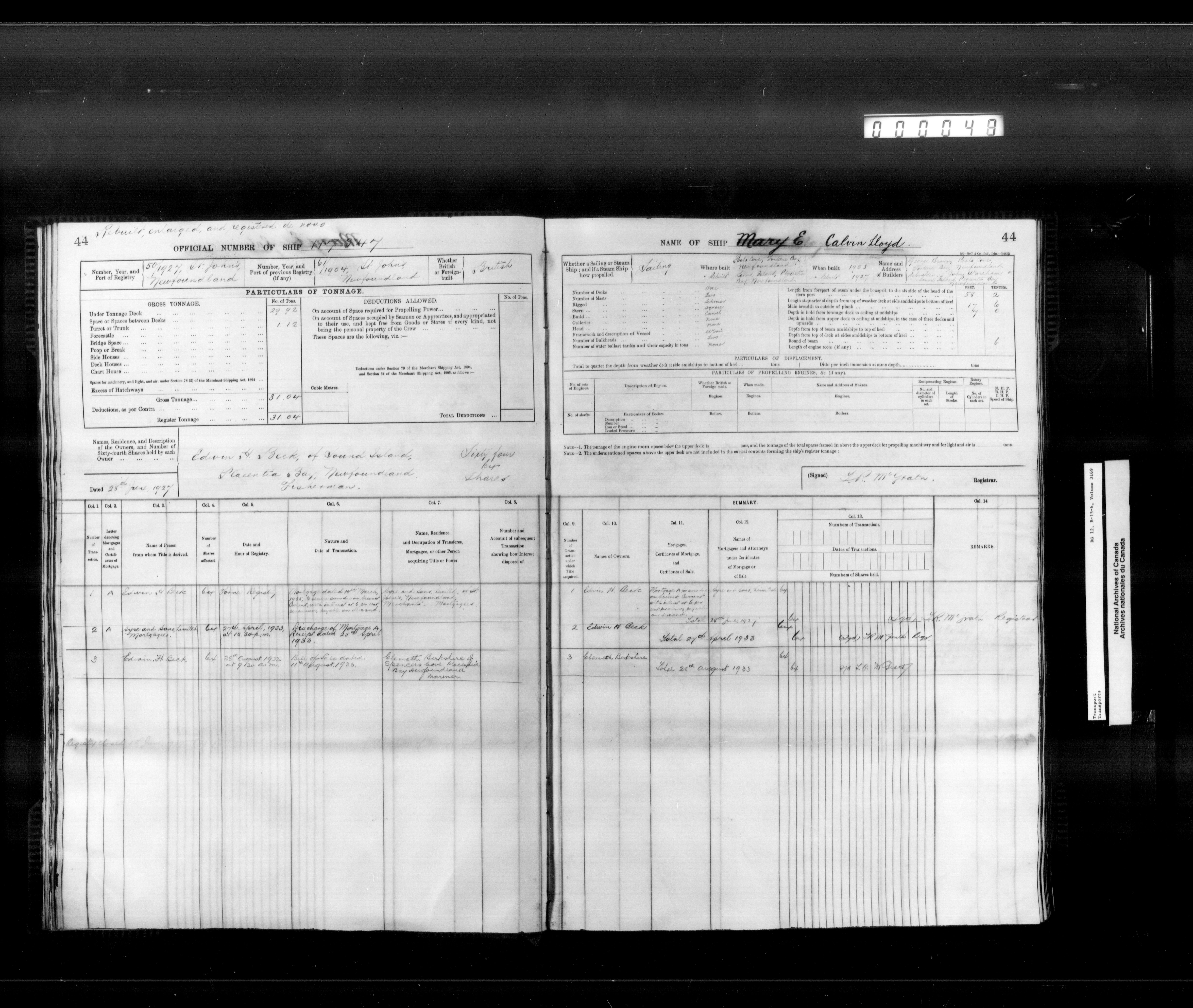 St. John's, Newfoundland Shipping Register - 12337