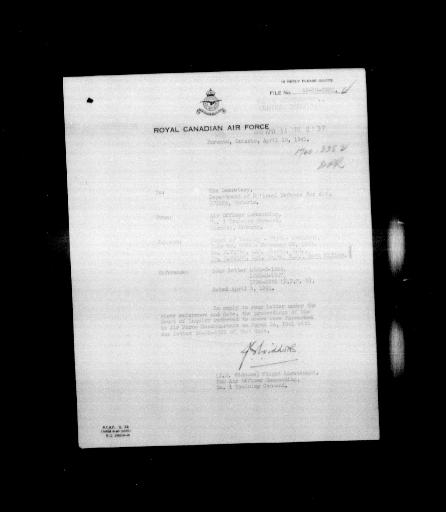 Aircraft Accident Investigation files from the second RCAF File Classification System (1937-1952) - 12347