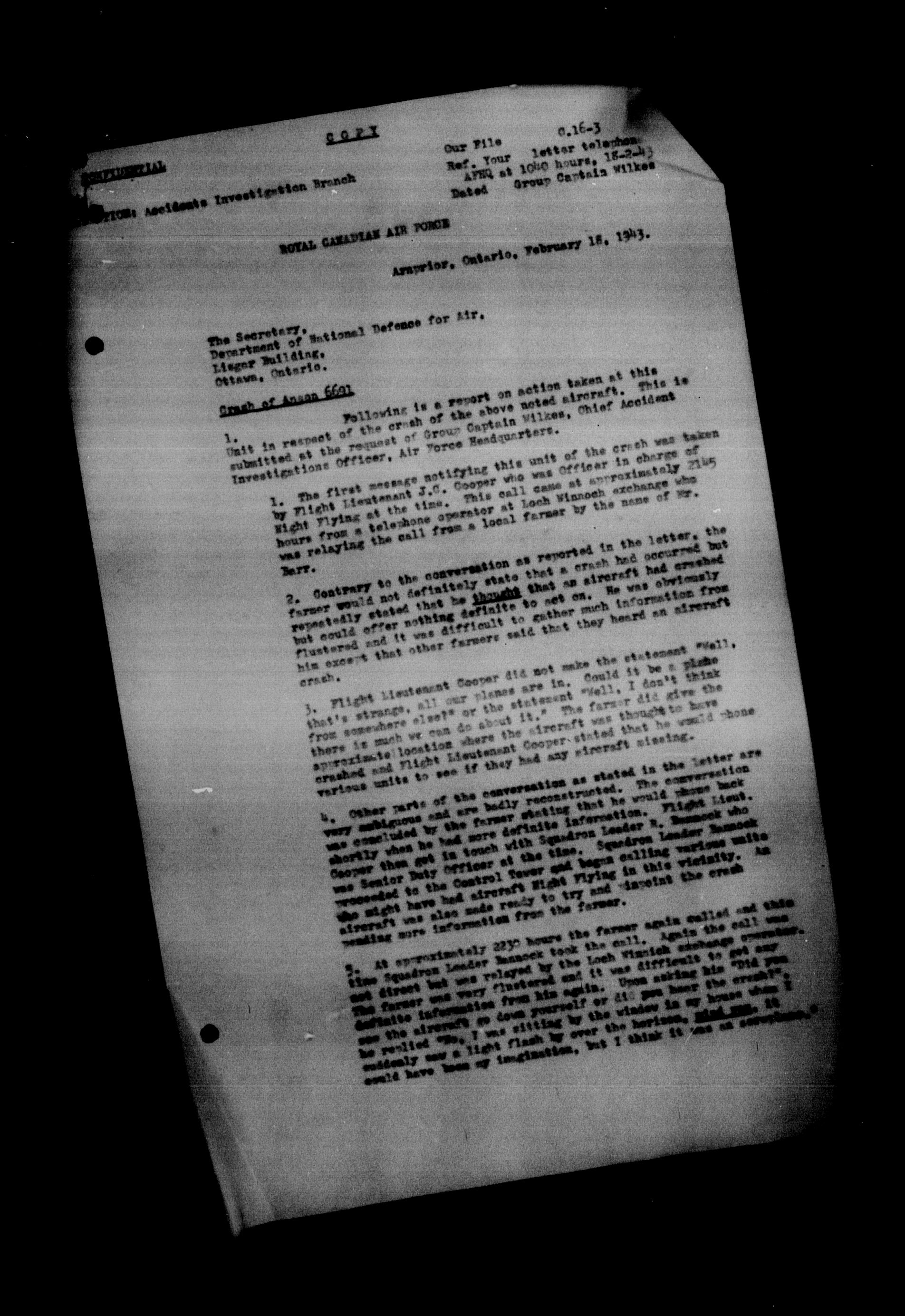 Aircraft Accident Investigation files from the second RCAF File Classification System (1937-1952) - 12351
