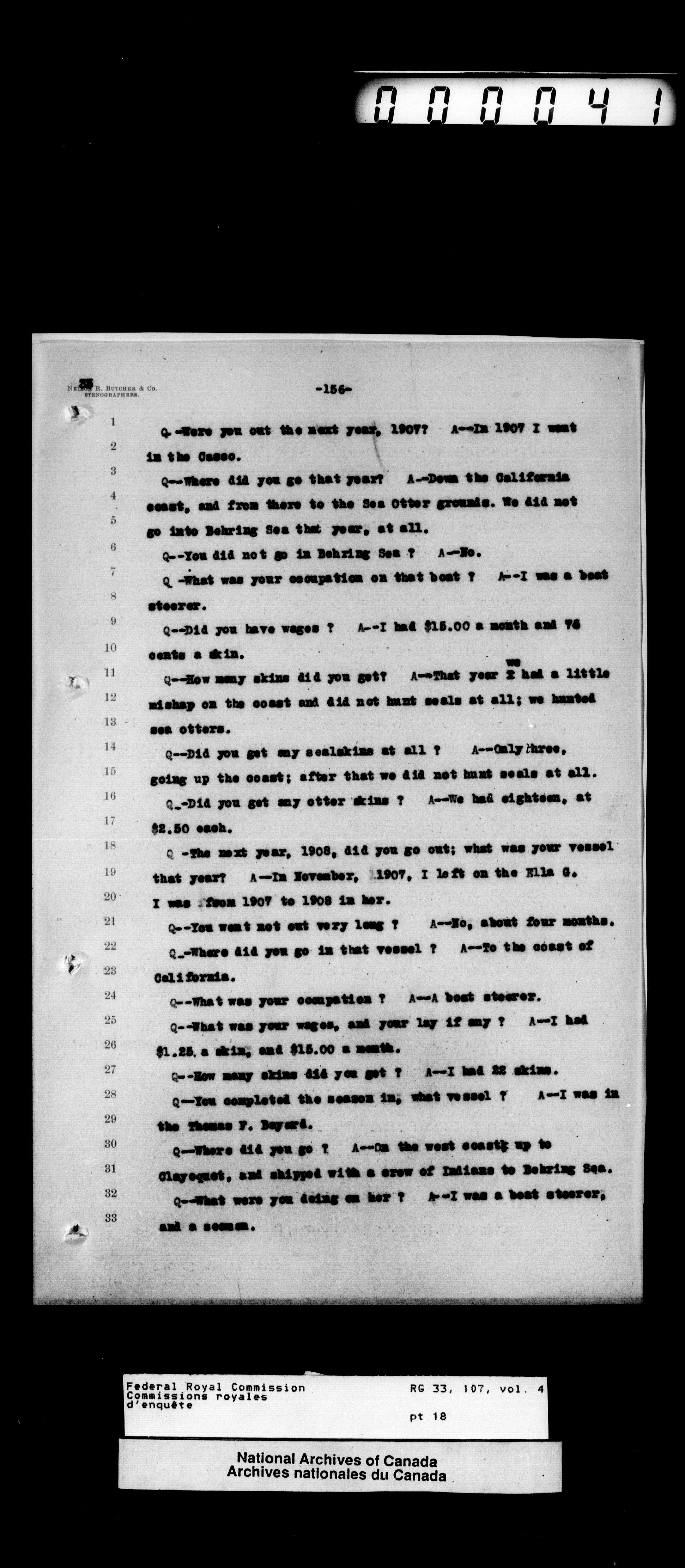Commission to Investigate into and Report upon Claims of certain Canadian Pelagic Sealers Alleged to have been damnified by reason of the Pelagic Sealing Treaty of the 7th July, 1911 between Great Britain and the United States, Russia, and Japan, and by the Paris Award Regulations of 1893 - T-12358