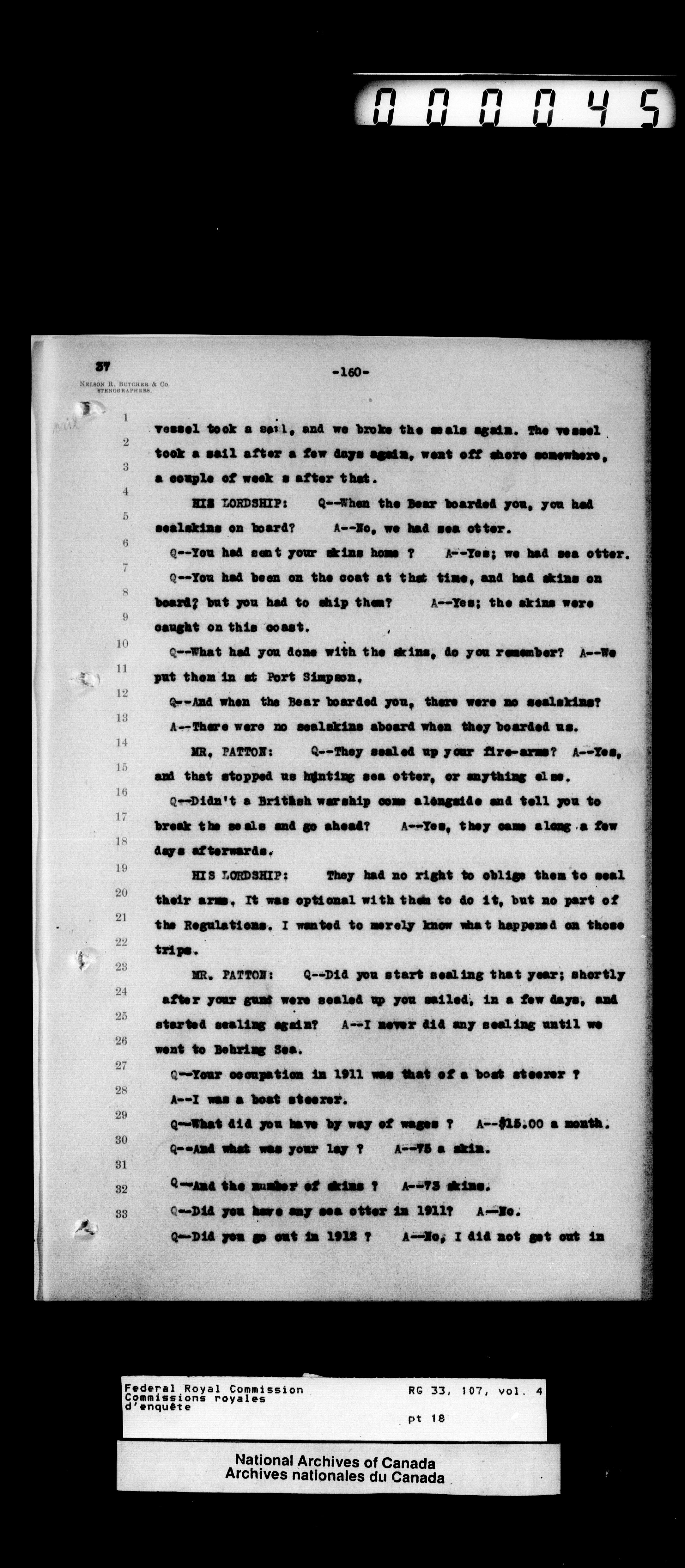 Commission to Investigate into and Report upon Claims of certain Canadian Pelagic Sealers Alleged to have been damnified by reason of the Pelagic Sealing Treaty of the 7th July, 1911 between Great Britain and the United States, Russia, and Japan, and by the Paris Award Regulations of 1893 fonds : T-12358