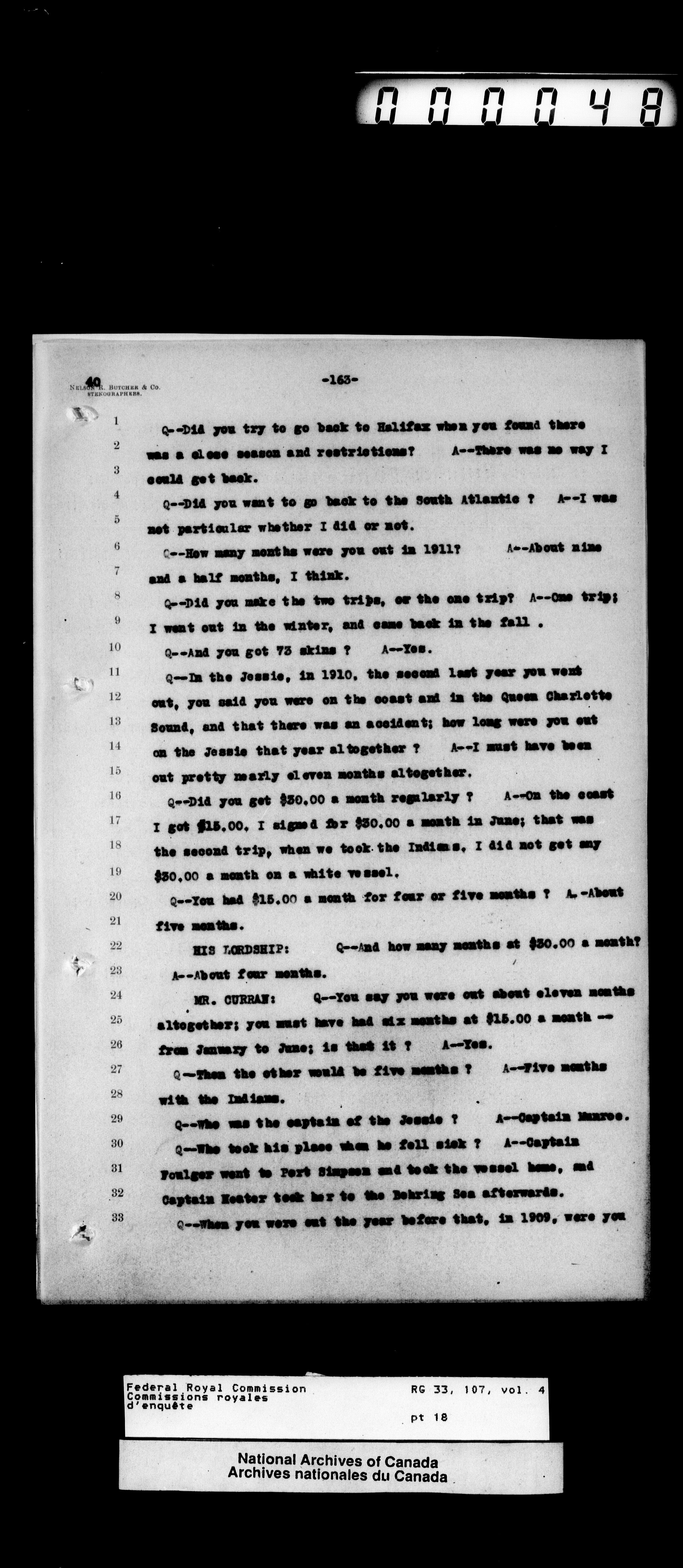 Commission to Investigate into and Report upon Claims of certain Canadian Pelagic Sealers Alleged to have been damnified by reason of the Pelagic Sealing Treaty of the 7th July, 1911 between Great Britain and the United States, Russia, and Japan, and by the Paris Award Regulations of 1893 - T-12358