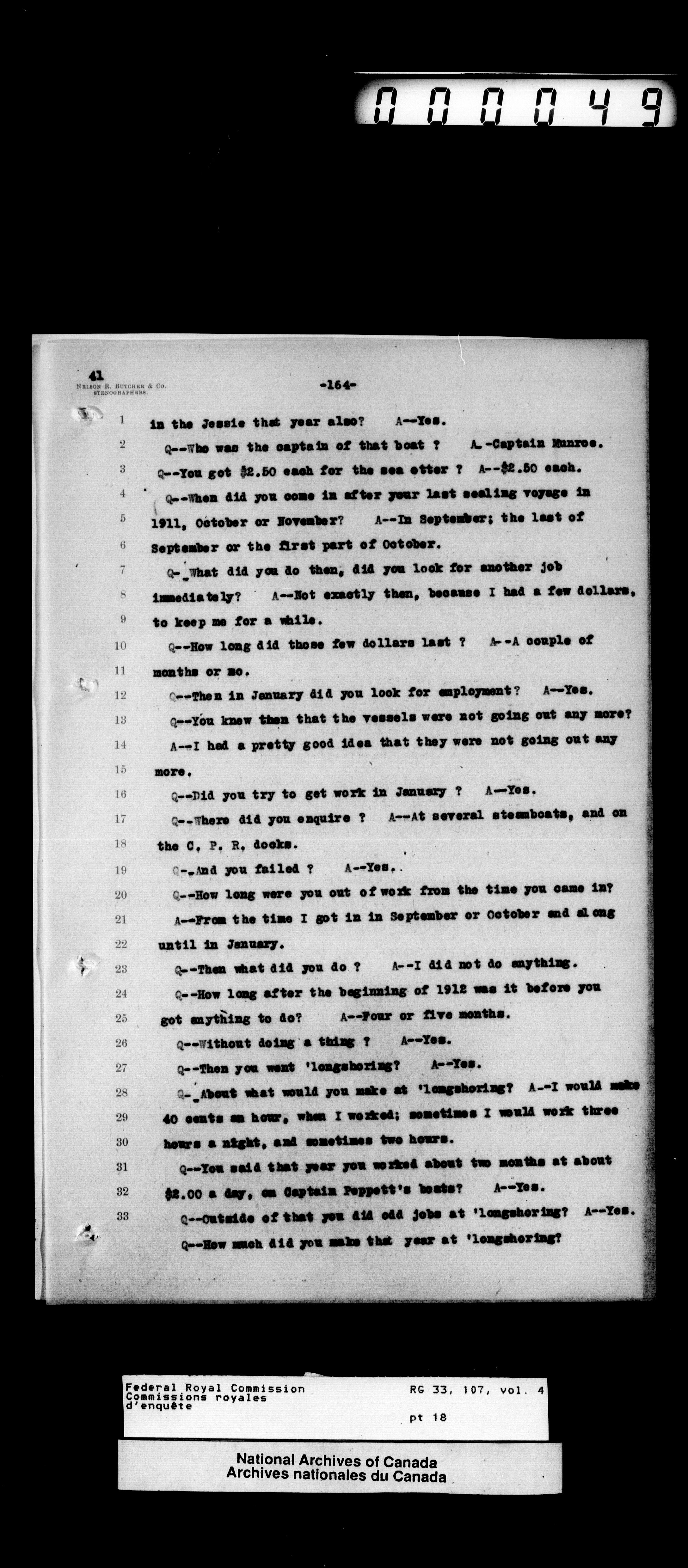 Commission to Investigate into and Report upon Claims of certain Canadian Pelagic Sealers Alleged to have been damnified by reason of the Pelagic Sealing Treaty of the 7th July, 1911 between Great Britain and the United States, Russia, and Japan, and by the Paris Award Regulations of 1893 fonds : T-12358