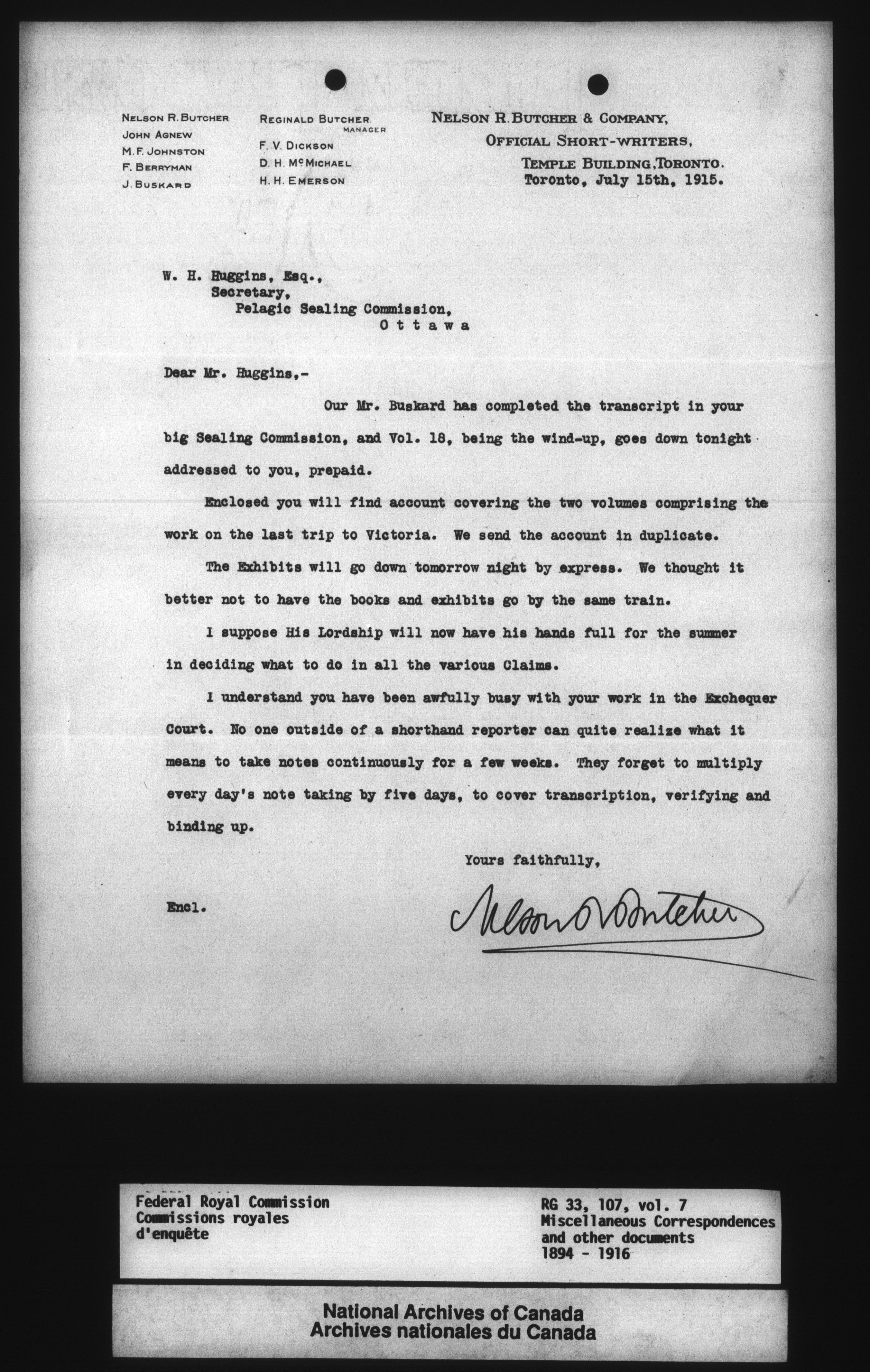 Commission to Investigate into and Report upon Claims of certain Canadian Pelagic Sealers Alleged to have been damnified by reason of the Pelagic Sealing Treaty of the 7th July, 1911 between Great Britain and the United States, Russia, and Japan, and by the Paris Award Regulations of 1893 - 12361