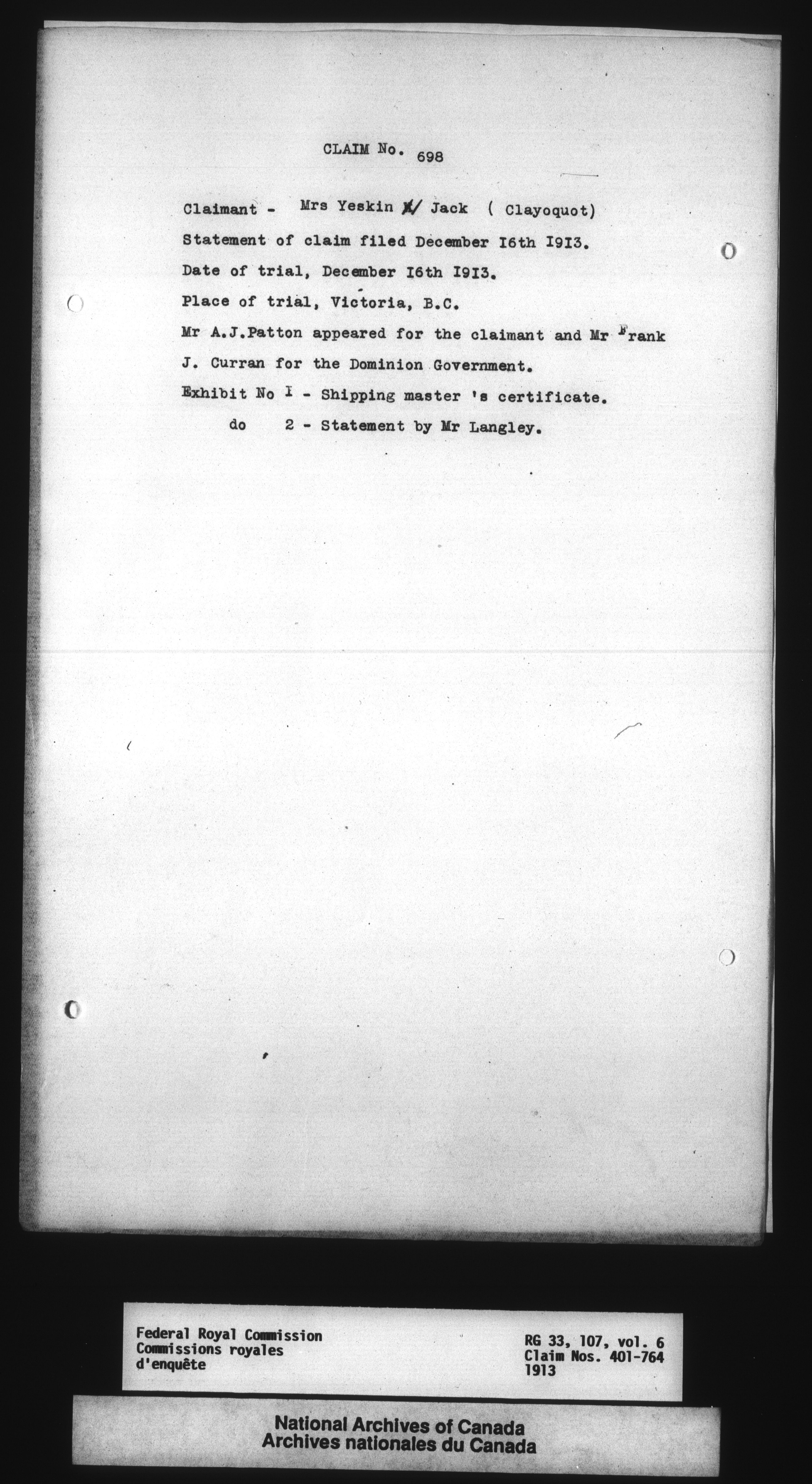 Commission to Investigate into and Report upon Claims of certain Canadian Pelagic Sealers Alleged to have been damnified by reason of the Pelagic Sealing Treaty of the 7th July, 1911 between Great Britain and the United States, Russia, and Japan, and by the Paris Award Regulations of 1893 - 12361