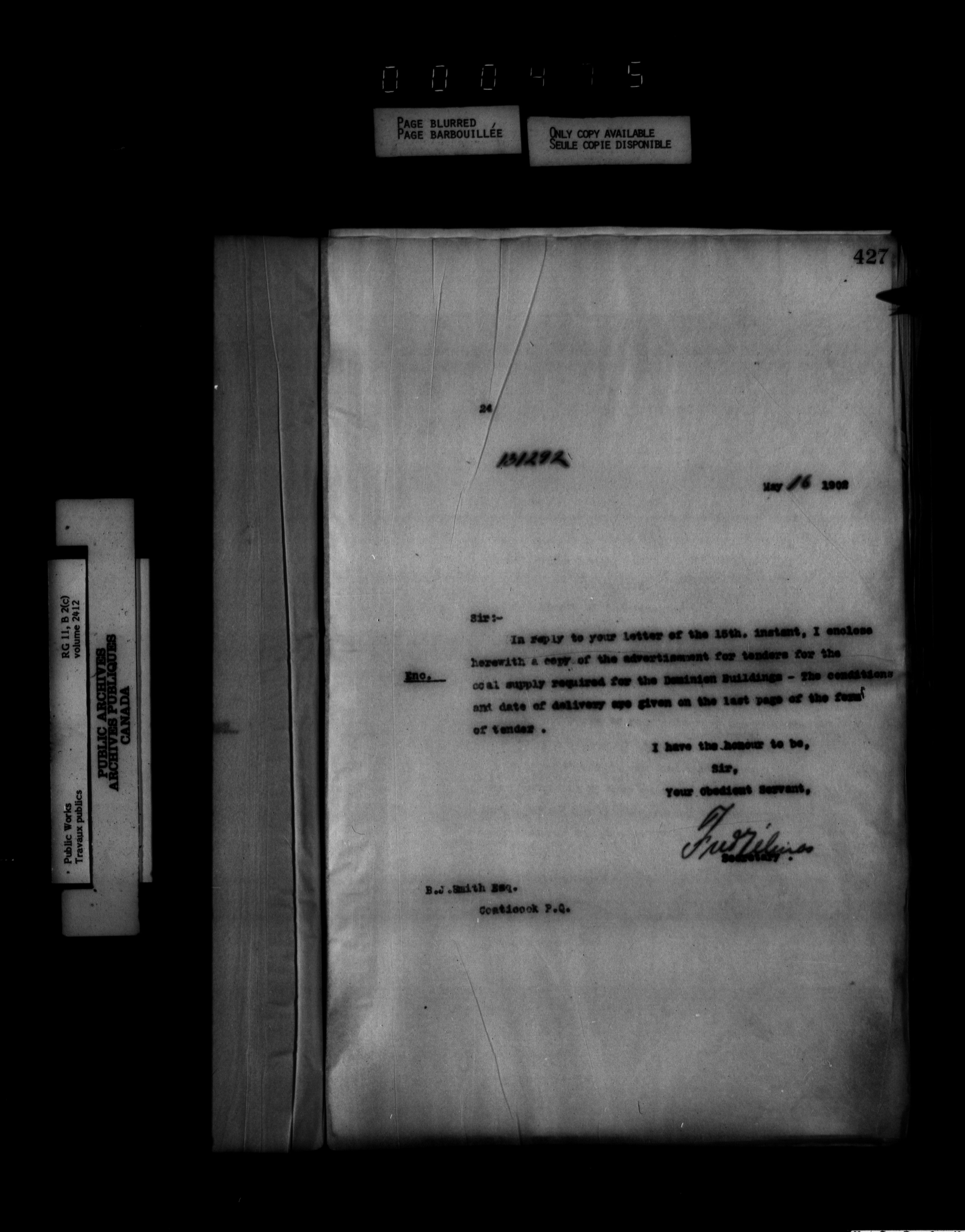 Department of Public Works : Outgoing Numbered Correspondence, 1879-1912 - 1237