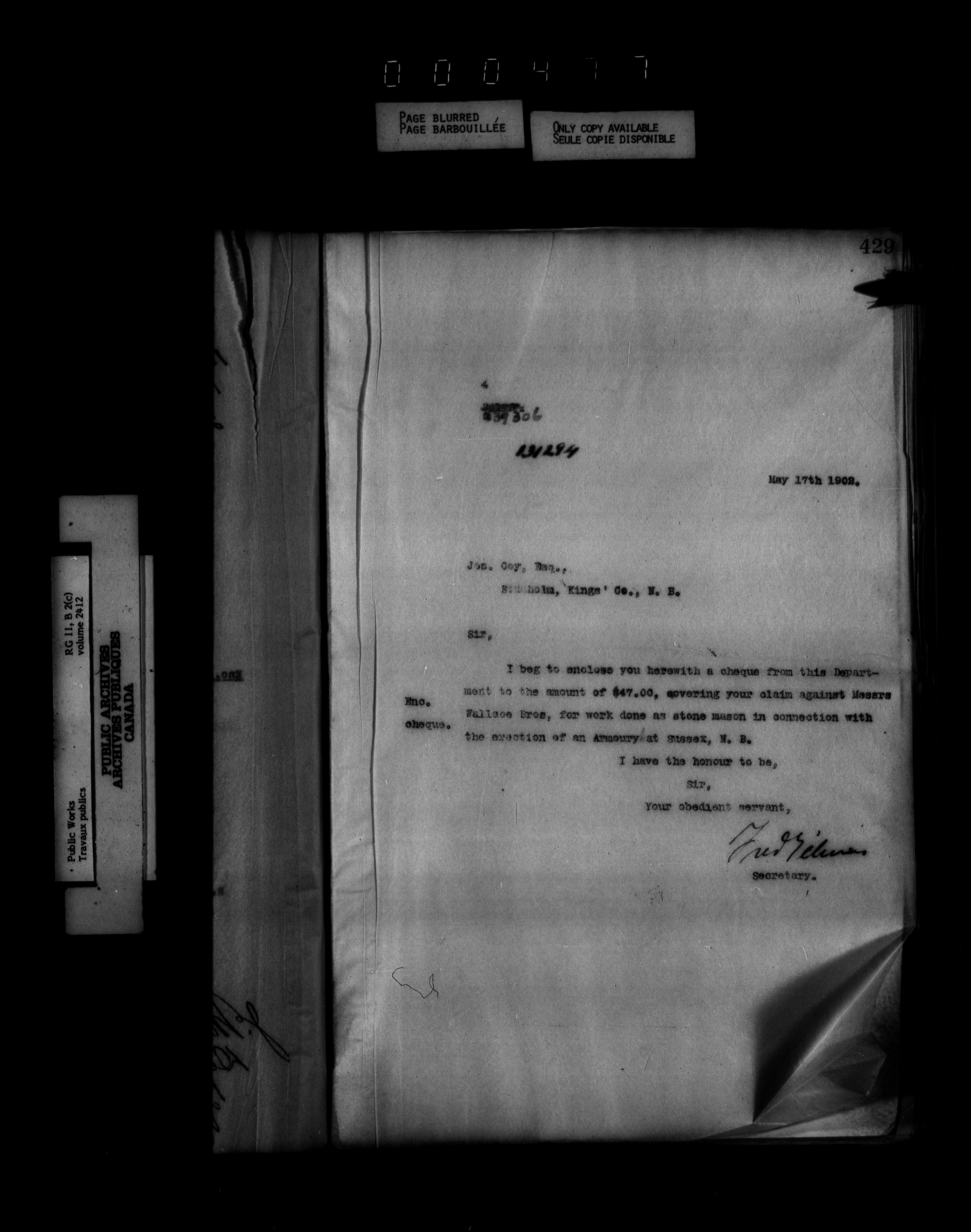 Department of Public Works : Outgoing Numbered Correspondence, 1879-1912 - 1237
