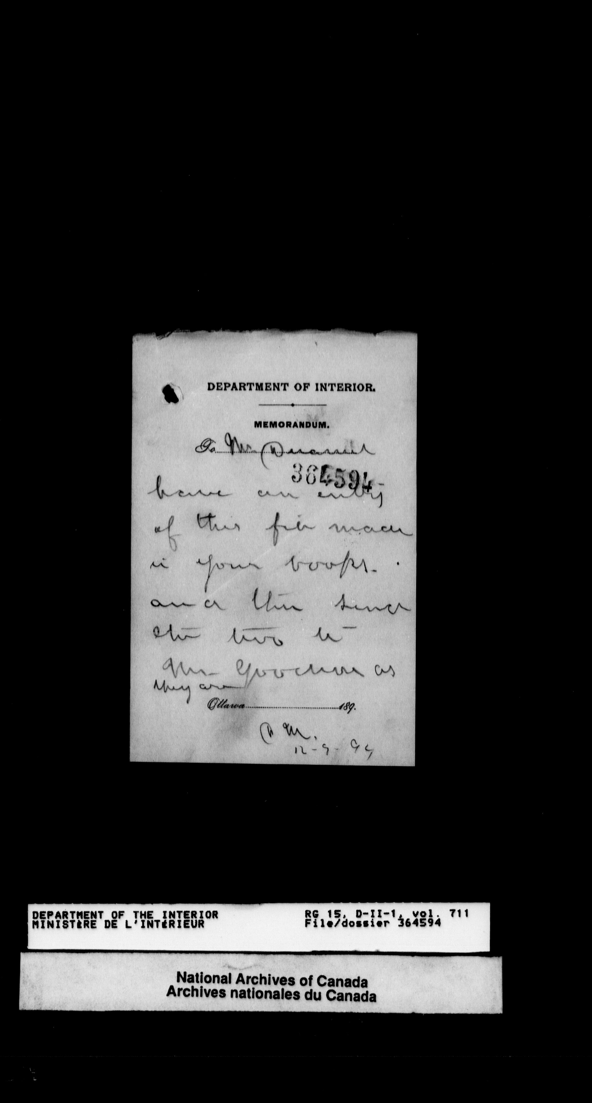 Central registry subject files created by the Dominion Lands Branch - T-12441