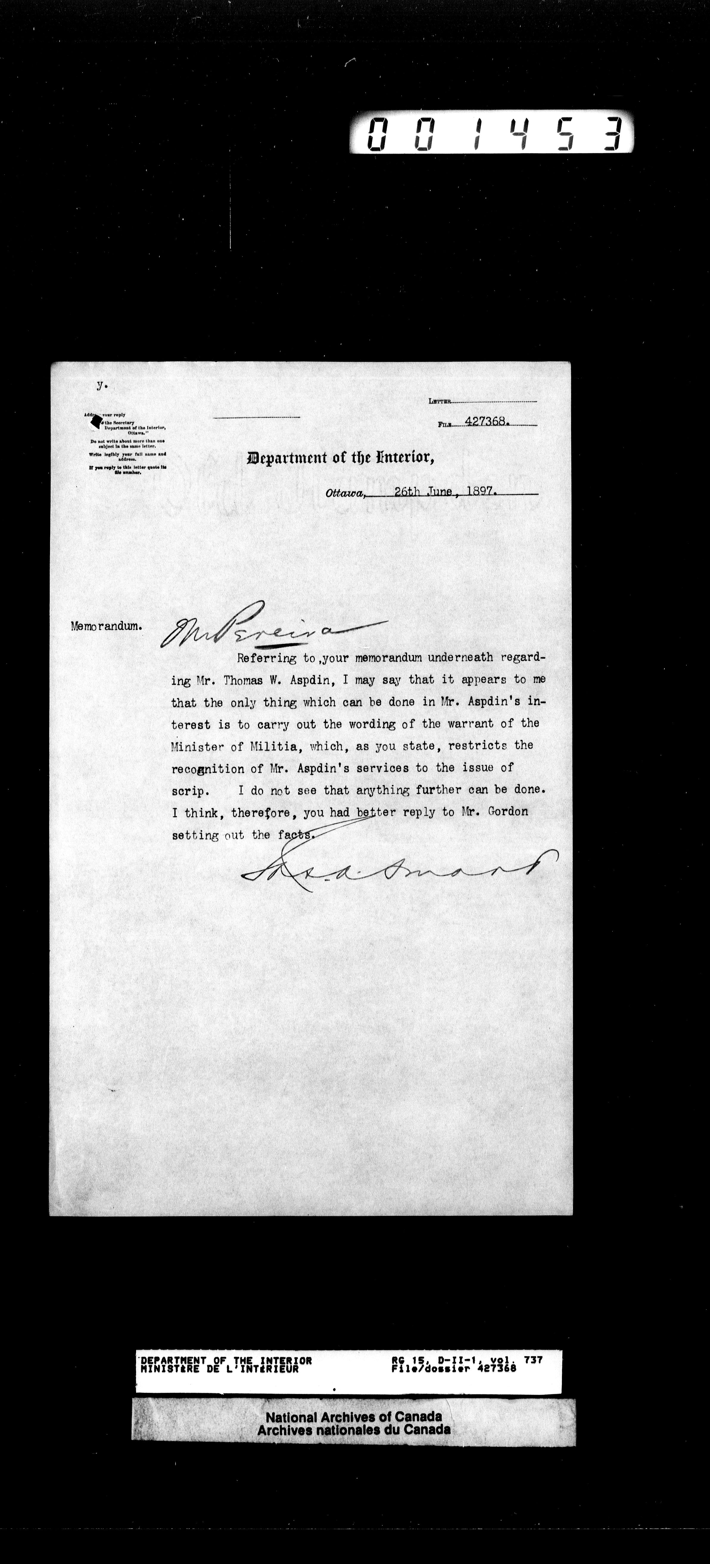 Central registry subject files created by the Dominion Lands Branch - 12486