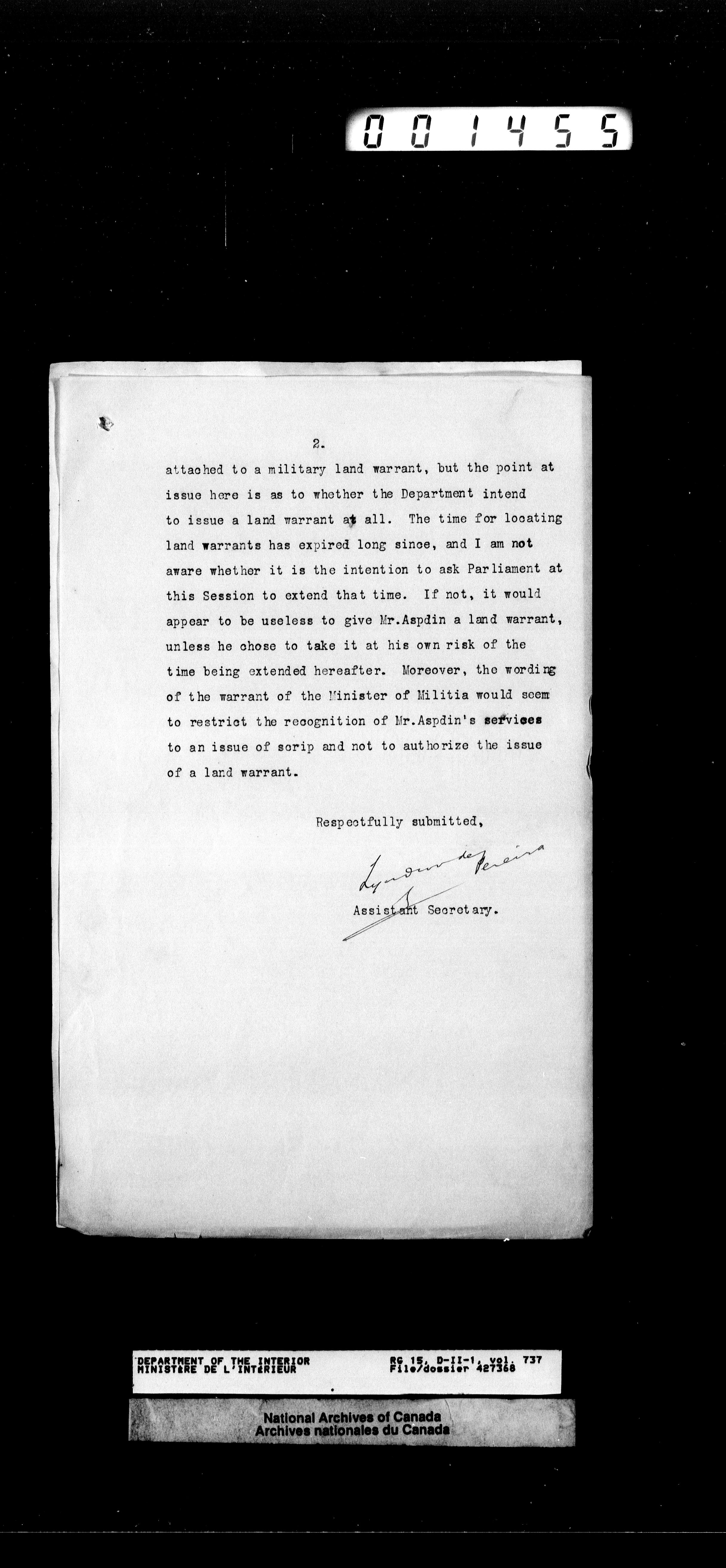 Central registry subject files created by the Dominion Lands Branch - 12486