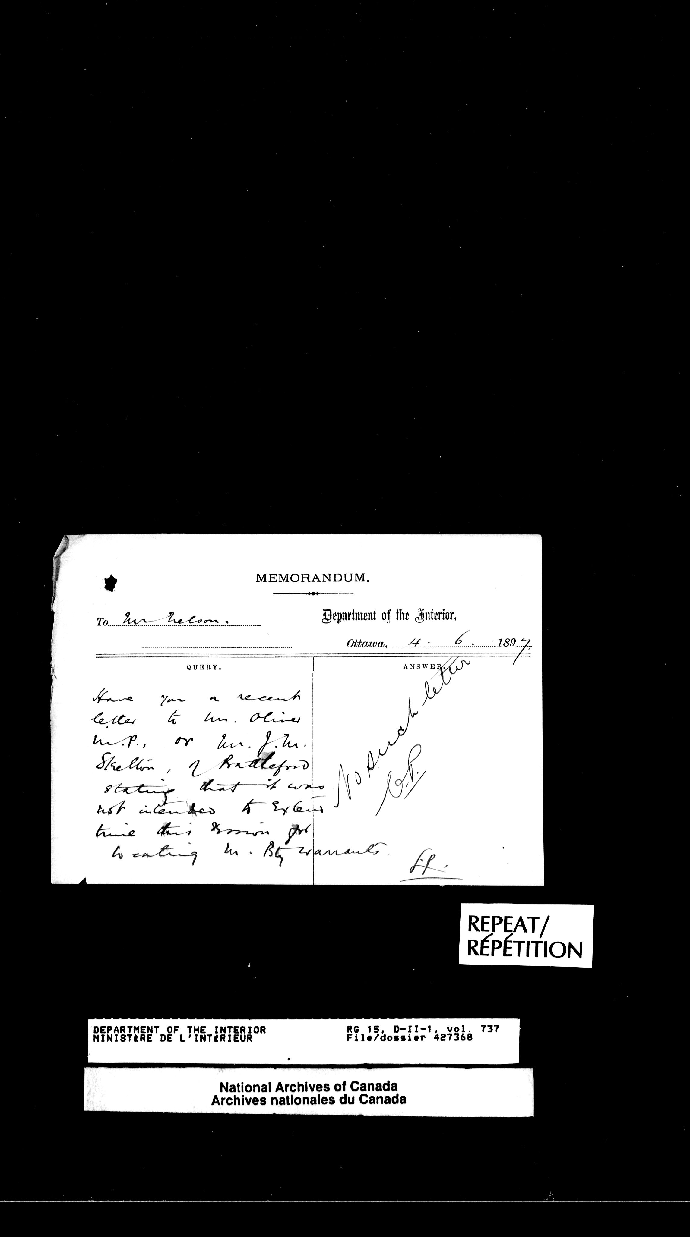 Central registry subject files created by the Dominion Lands Branch - 12486