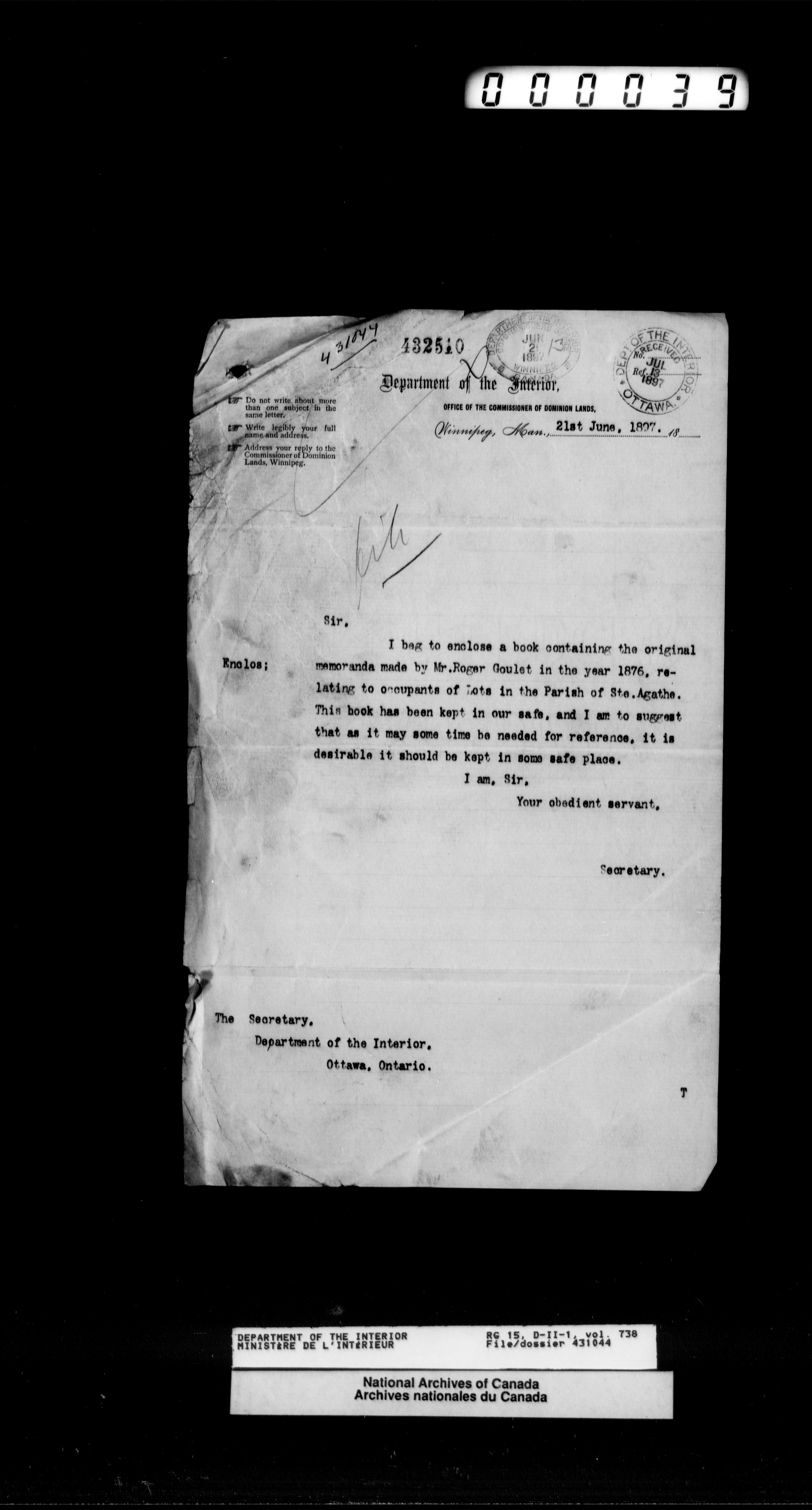 Central registry subject files created by the Dominion Lands Branch - 12488