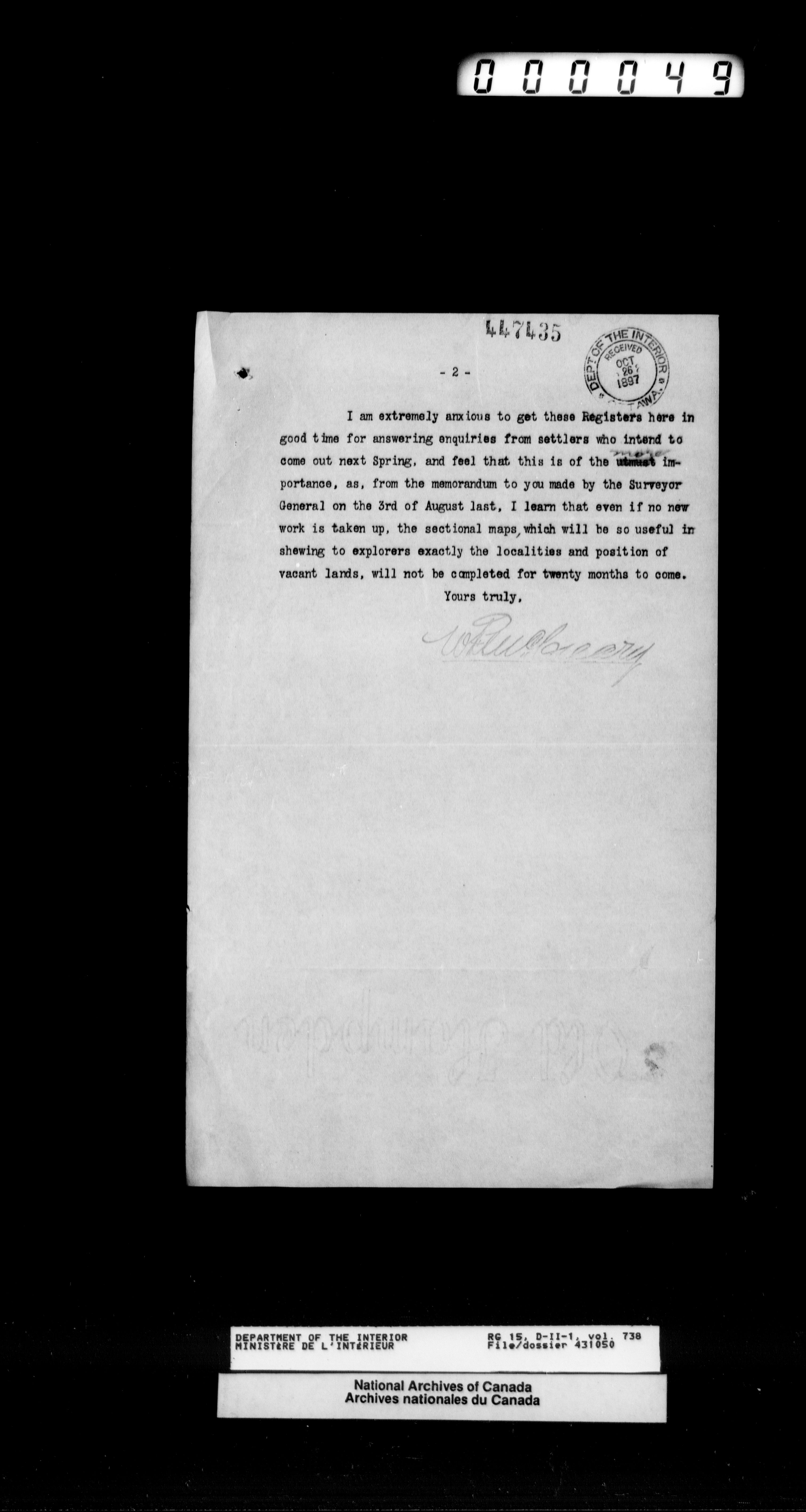 Central registry subject files created by the Dominion Lands Branch - 12488