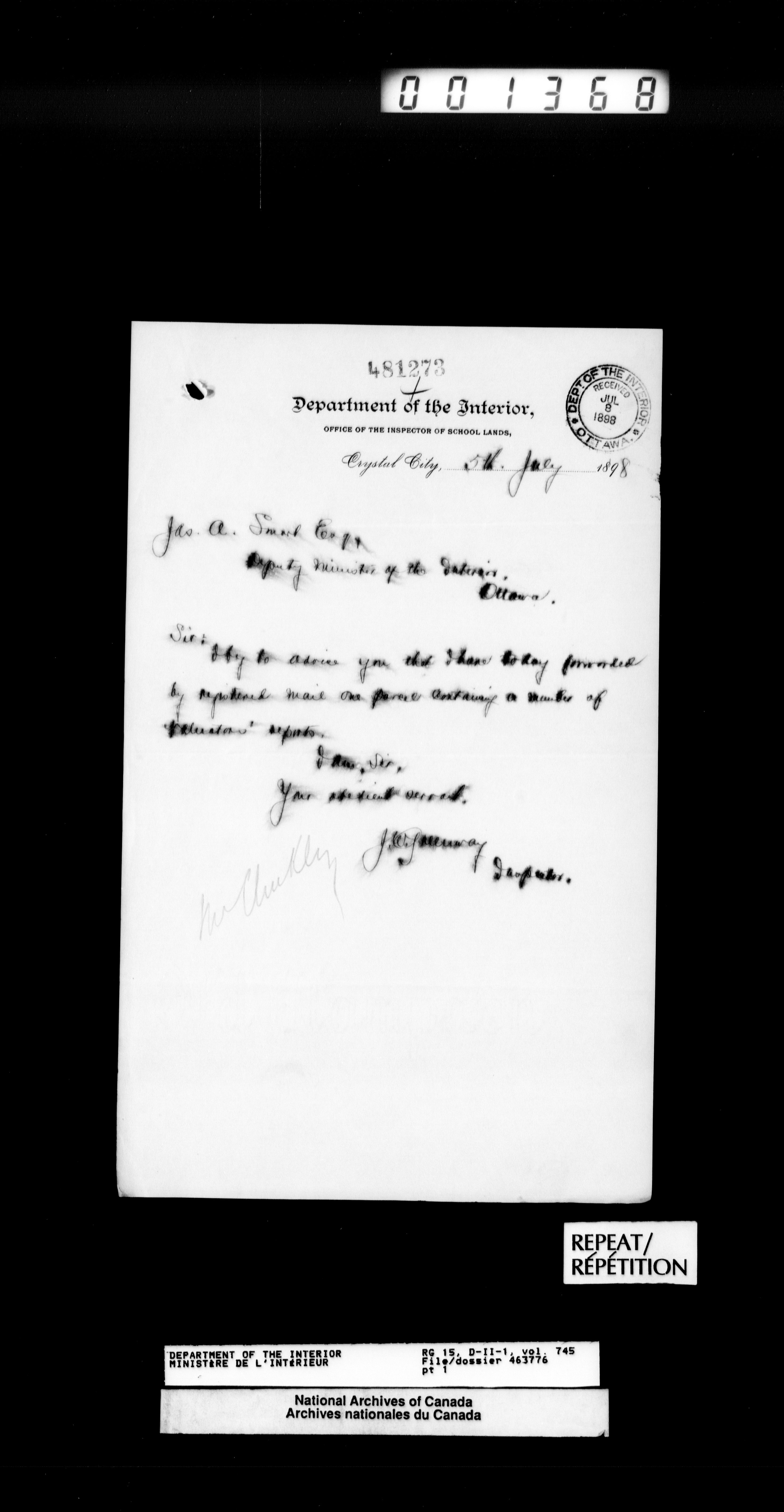 Central registry subject files created by the Dominion Lands Branch - 12493