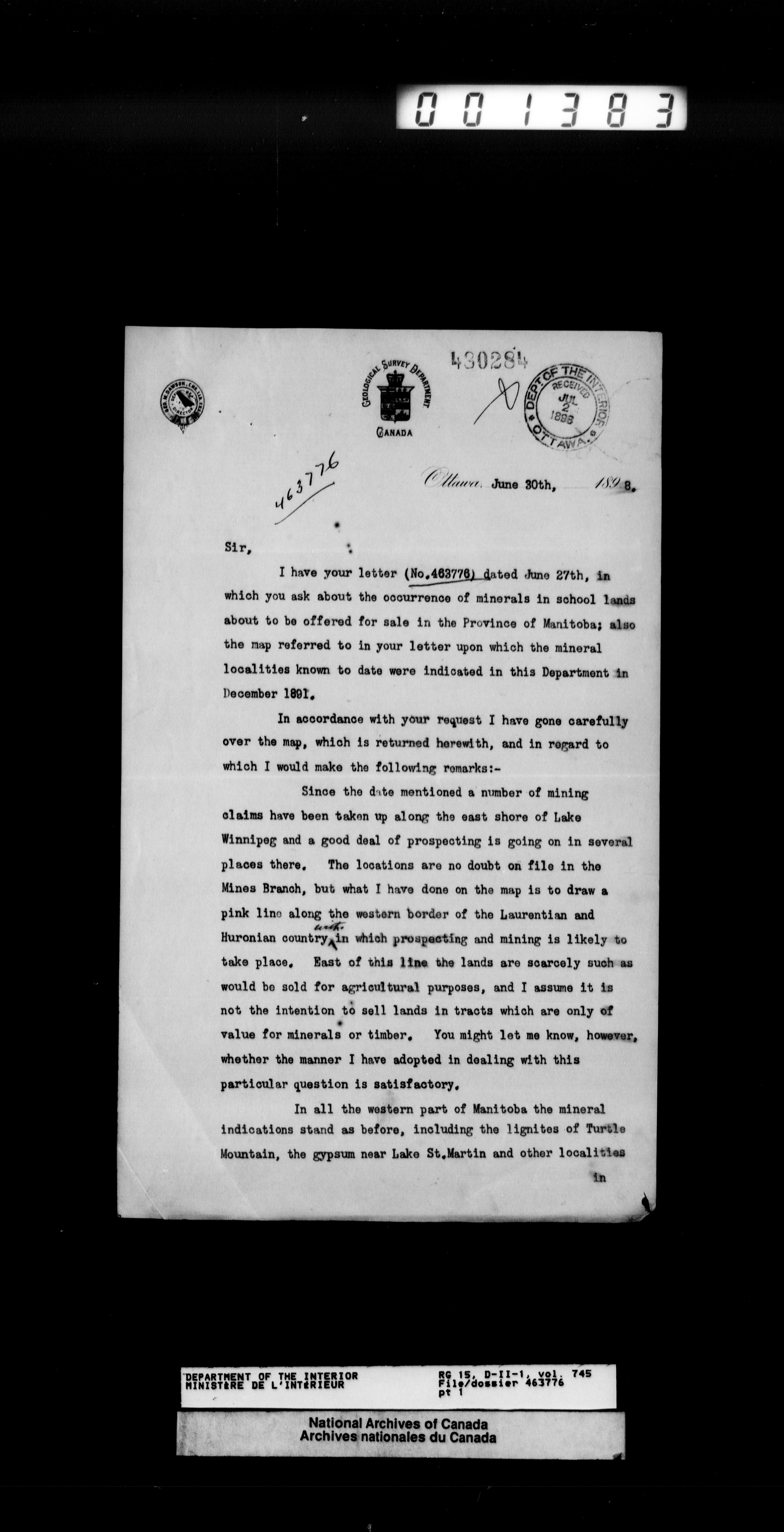 Central registry subject files created by the Dominion Lands Branch - 12493