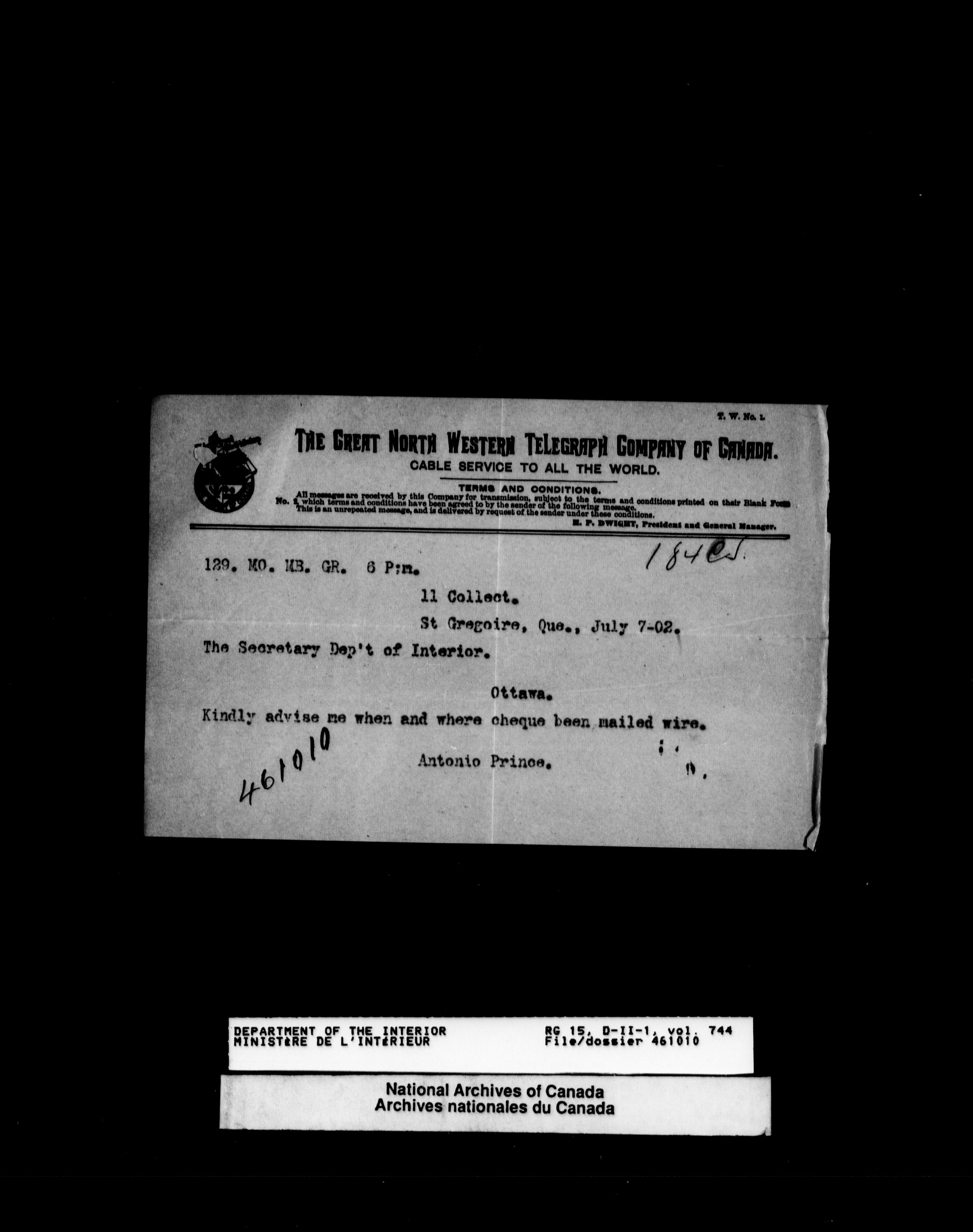 Central registry subject files created by the Dominion Lands Branch - 12493