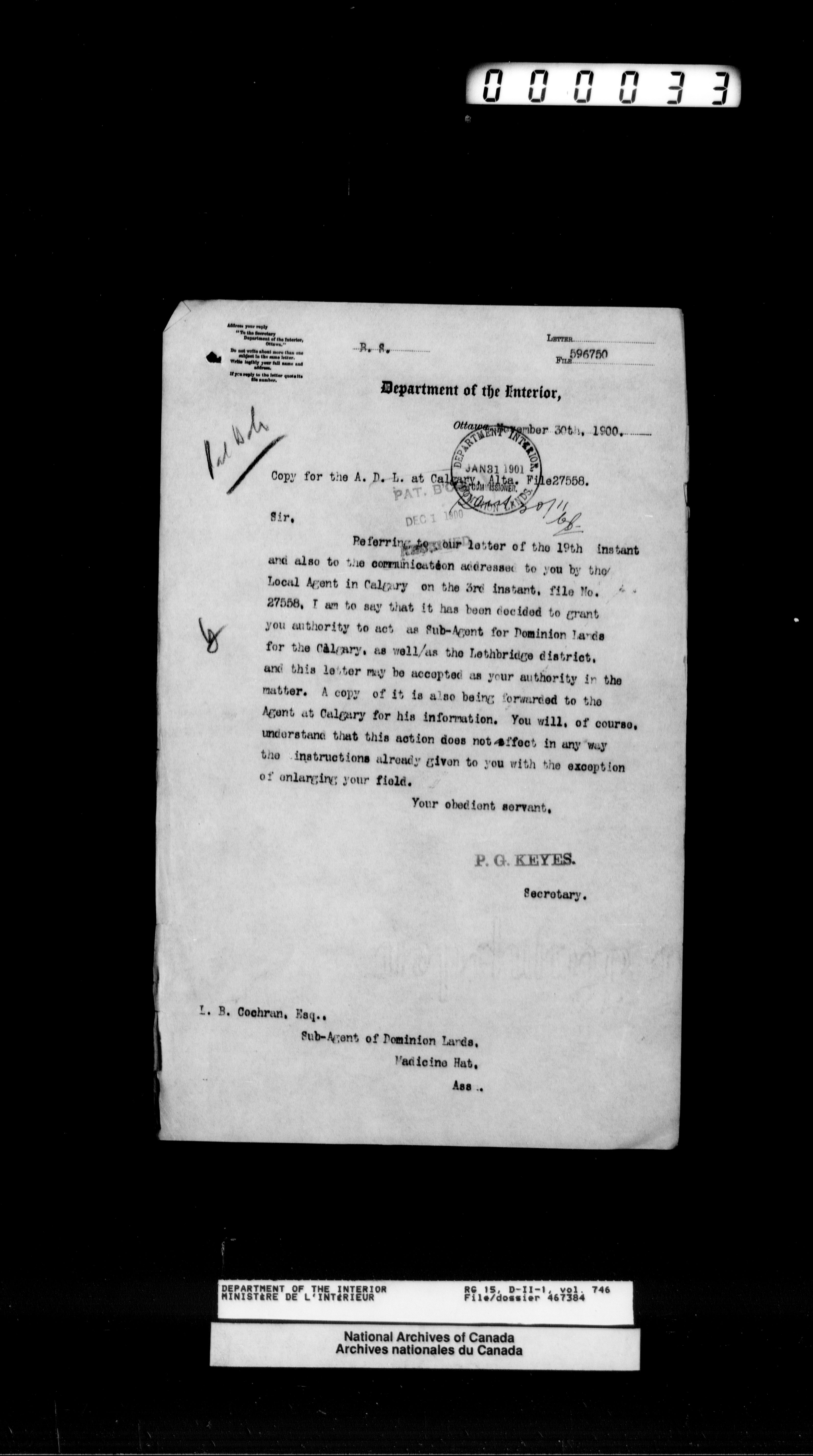 Central registry subject files created by the Dominion Lands Branch - 12495