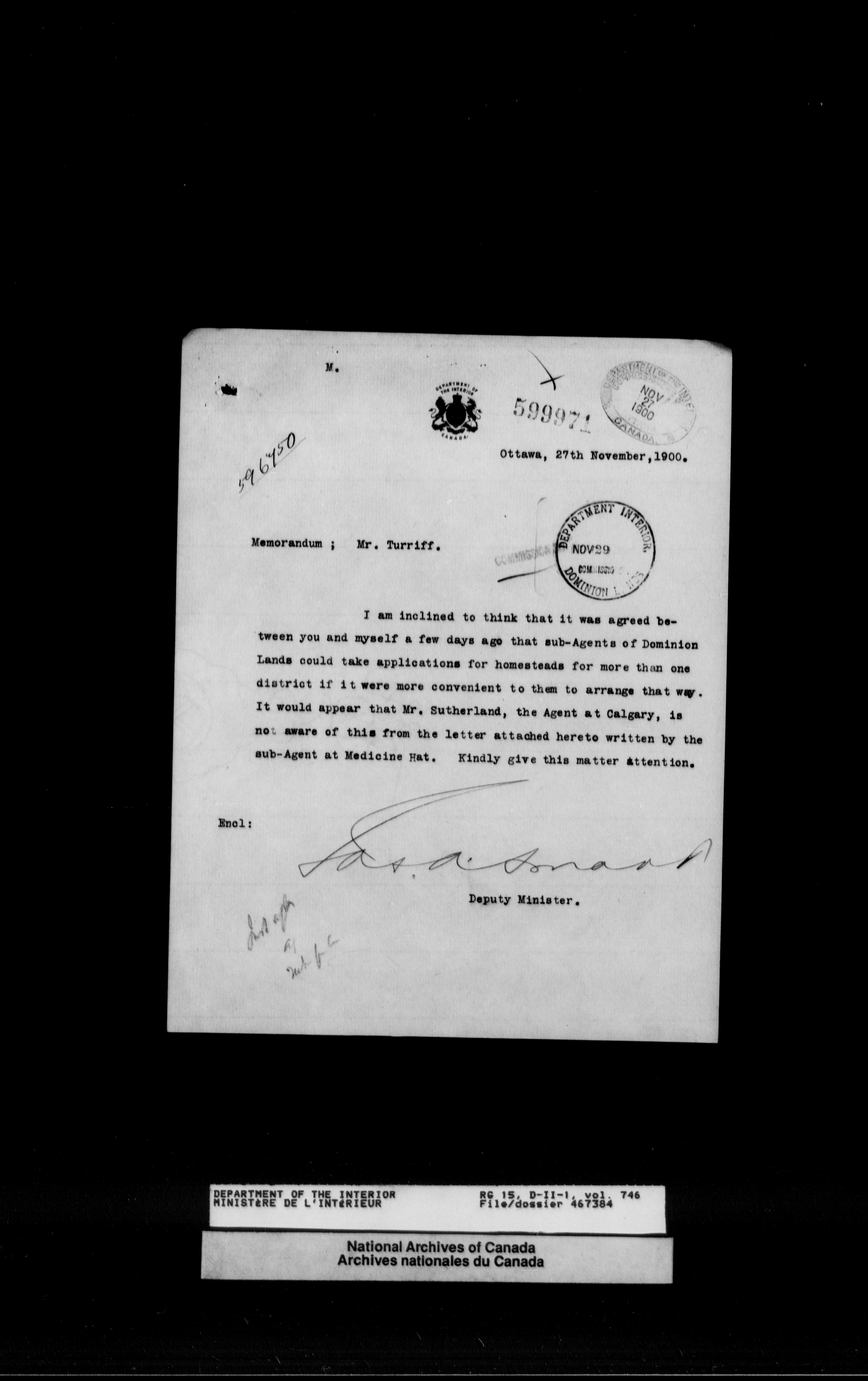 Central registry subject files created by the Dominion Lands Branch - 12495