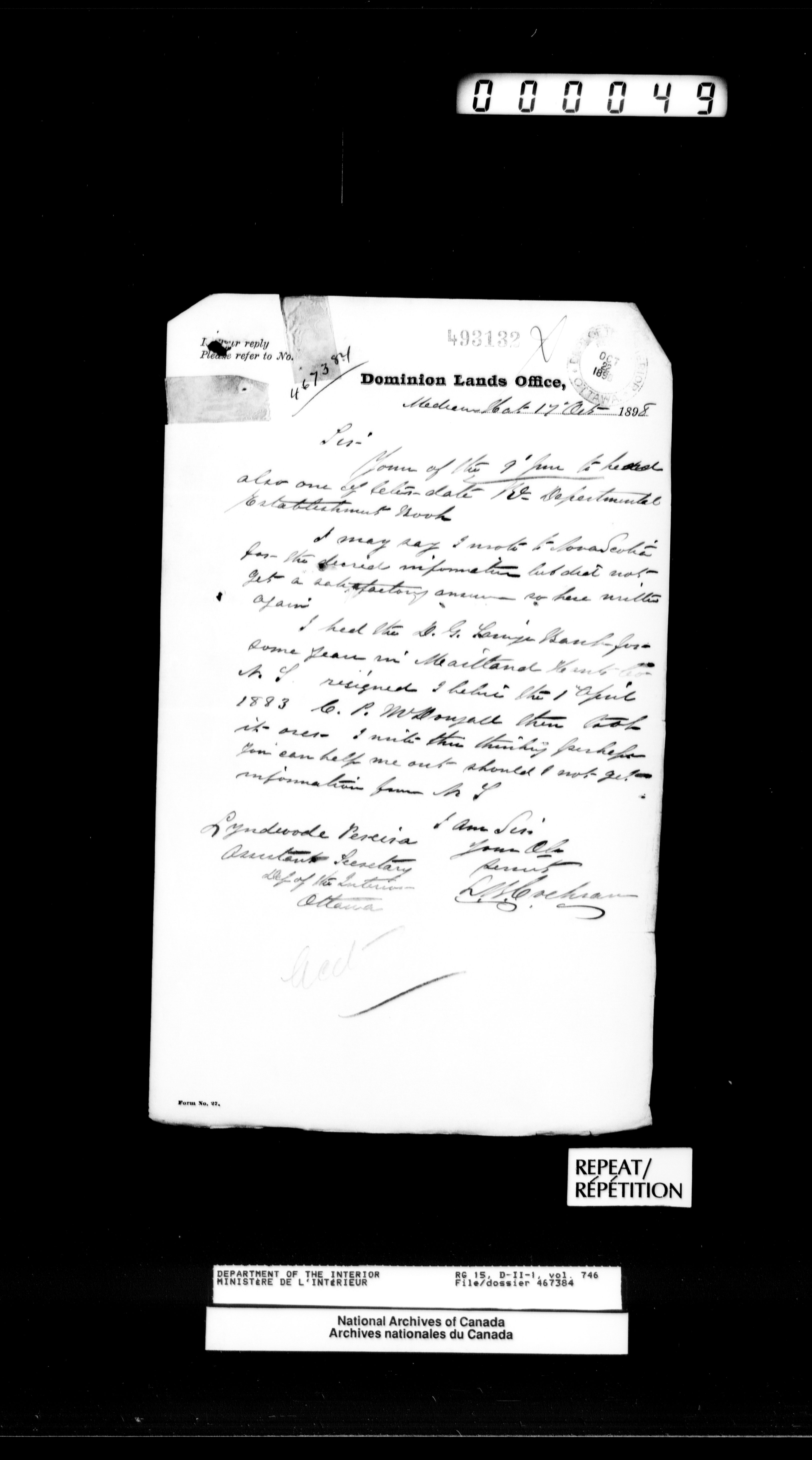 Central registry subject files created by the Dominion Lands Branch - 12495
