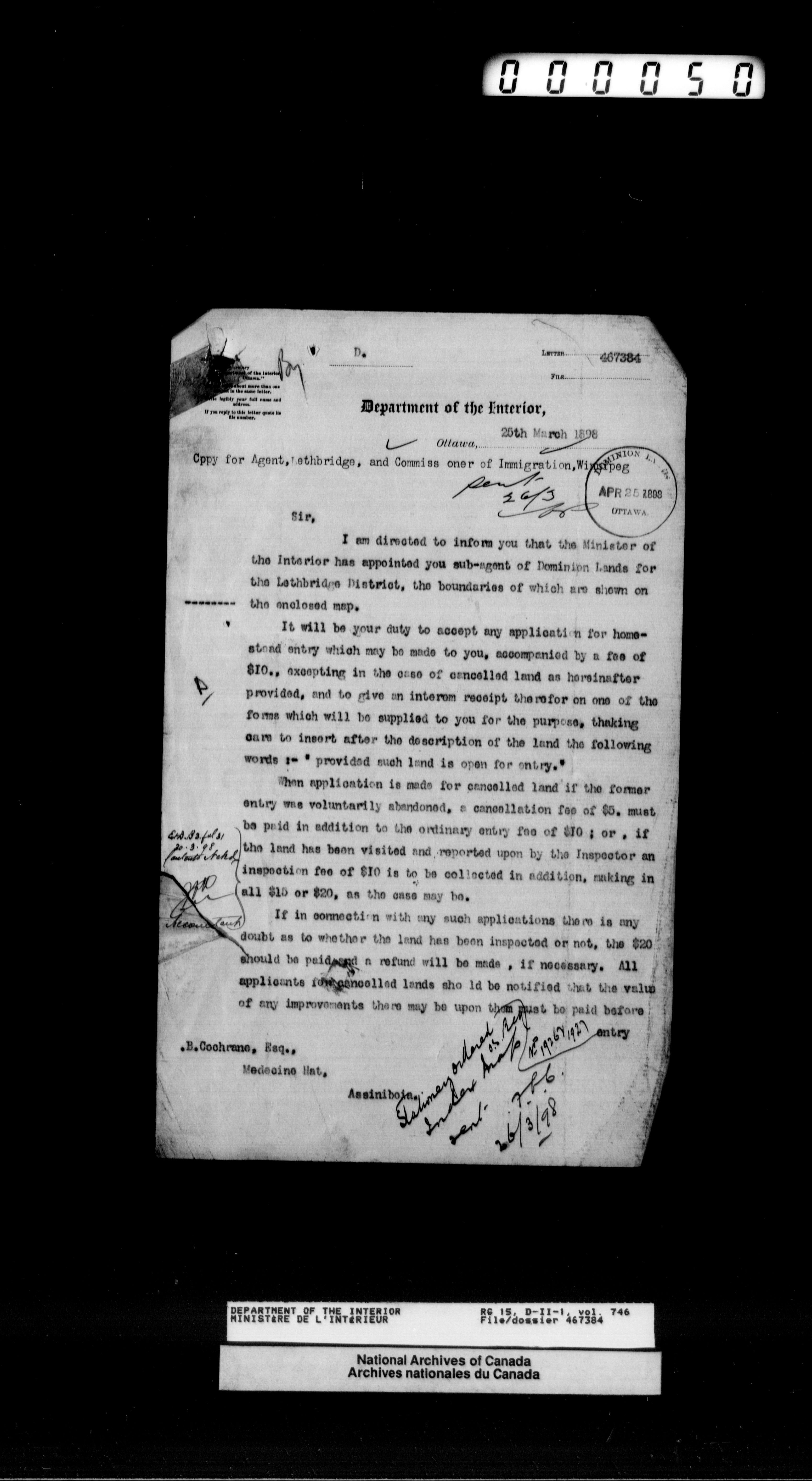 Central registry subject files created by the Dominion Lands Branch - 12495