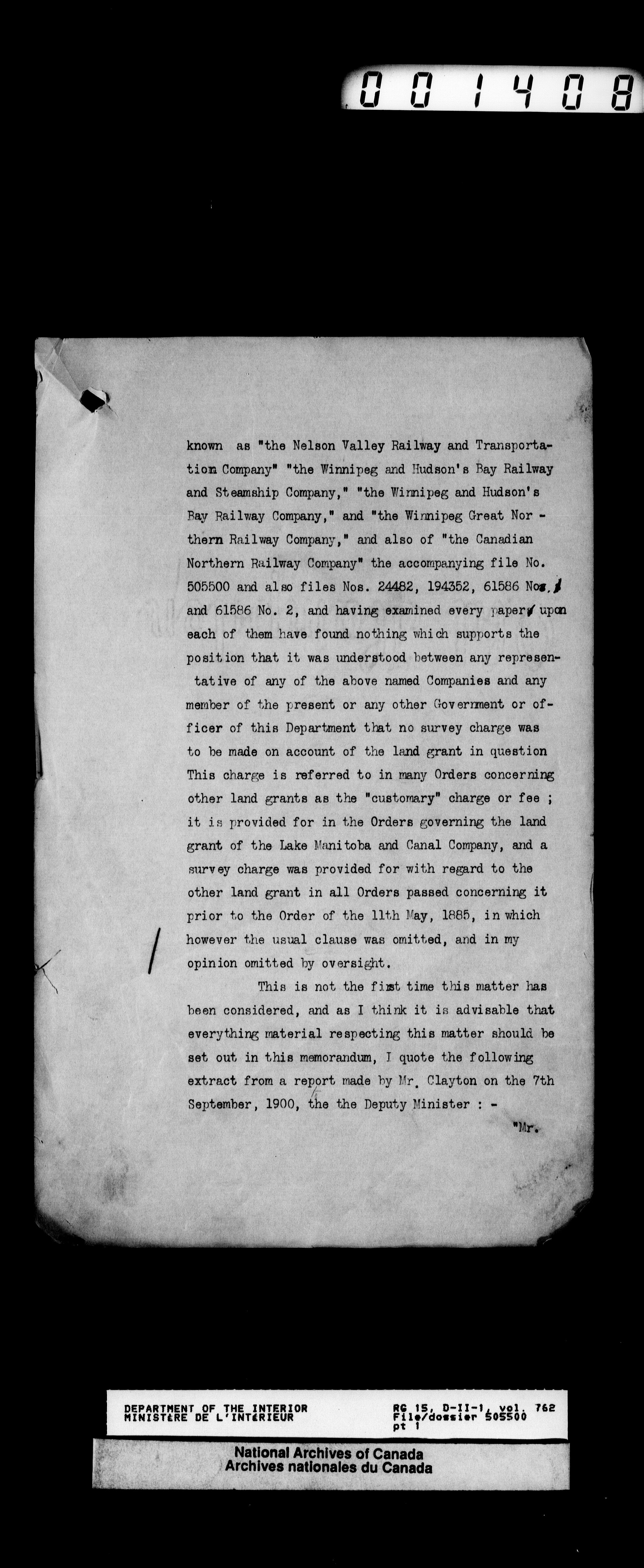 Central registry subject files created by the Dominion Lands Branch - T-12509