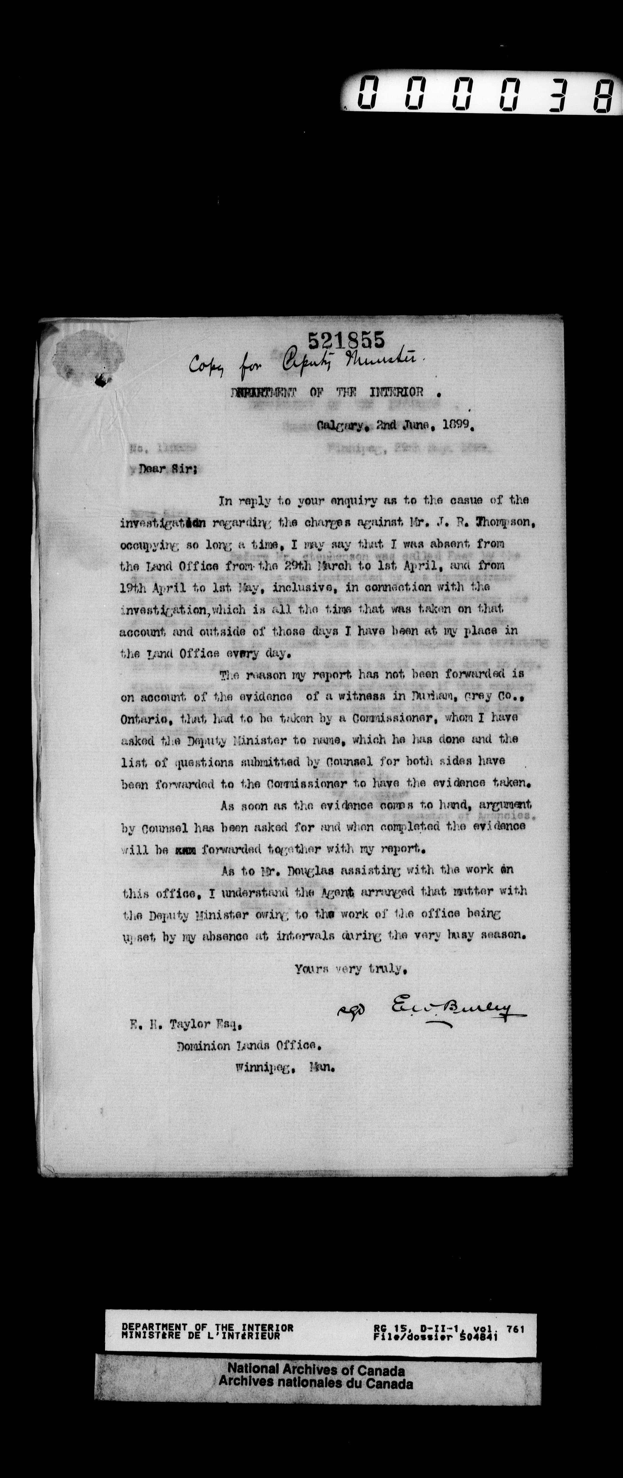 Central registry subject files created by the Dominion Lands Branch - T-12509