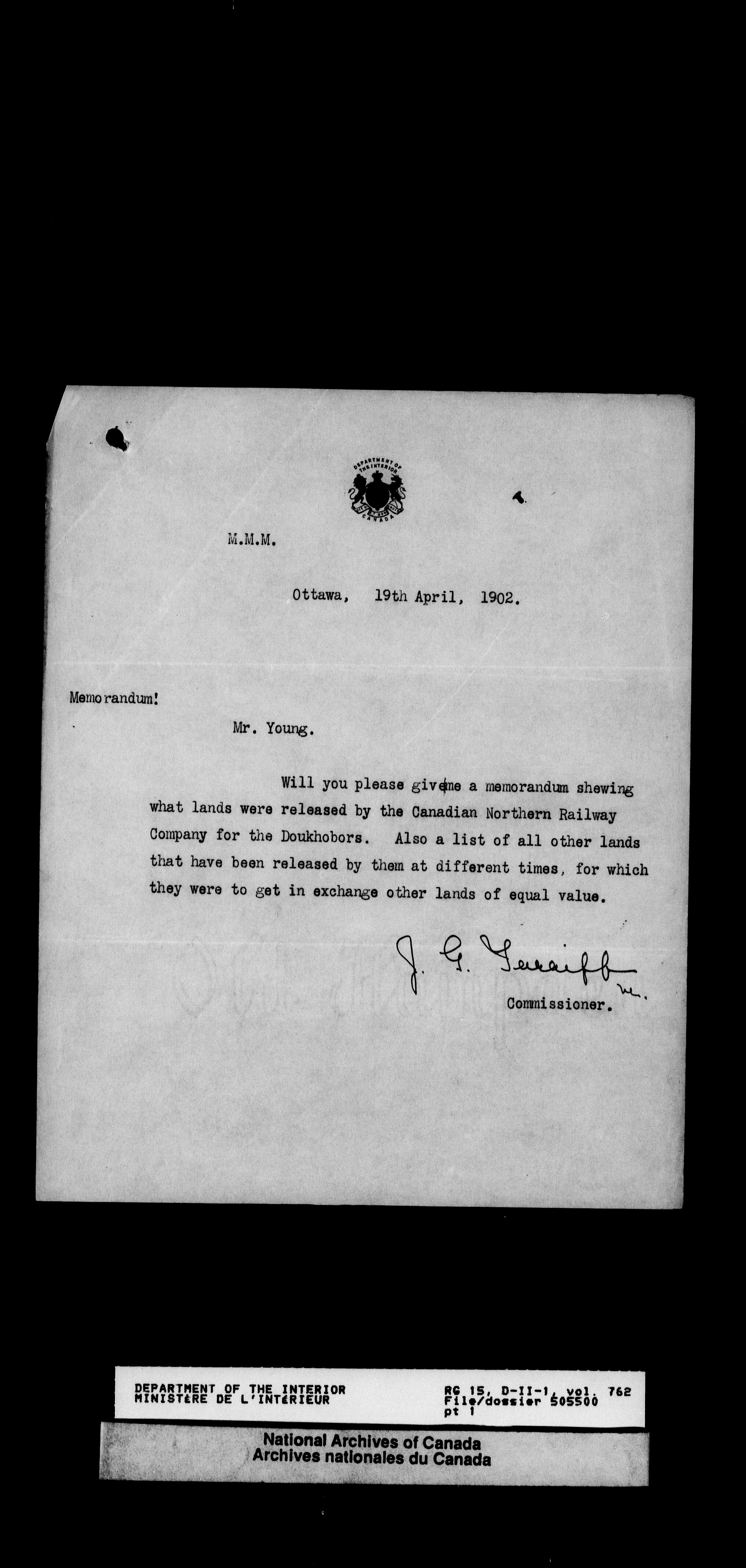 Volume 762, File 505500, Pt. 1 (cont'd) to Volume 763, File 505500, Pt. 3