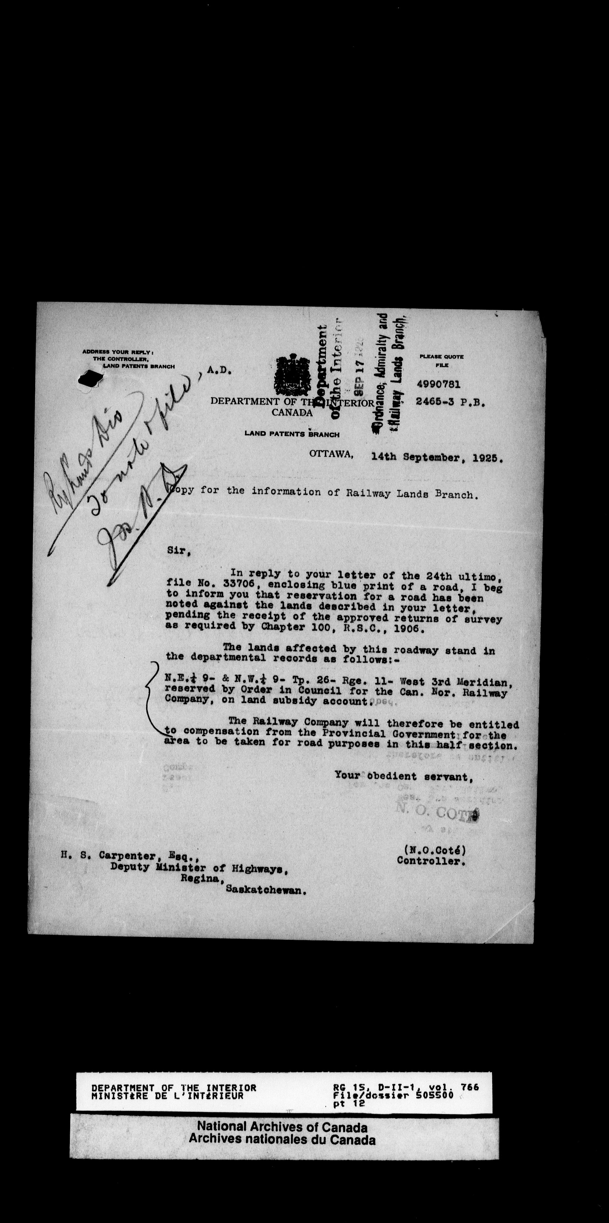 Central registry subject files created by the Dominion Lands Branch - T-12515