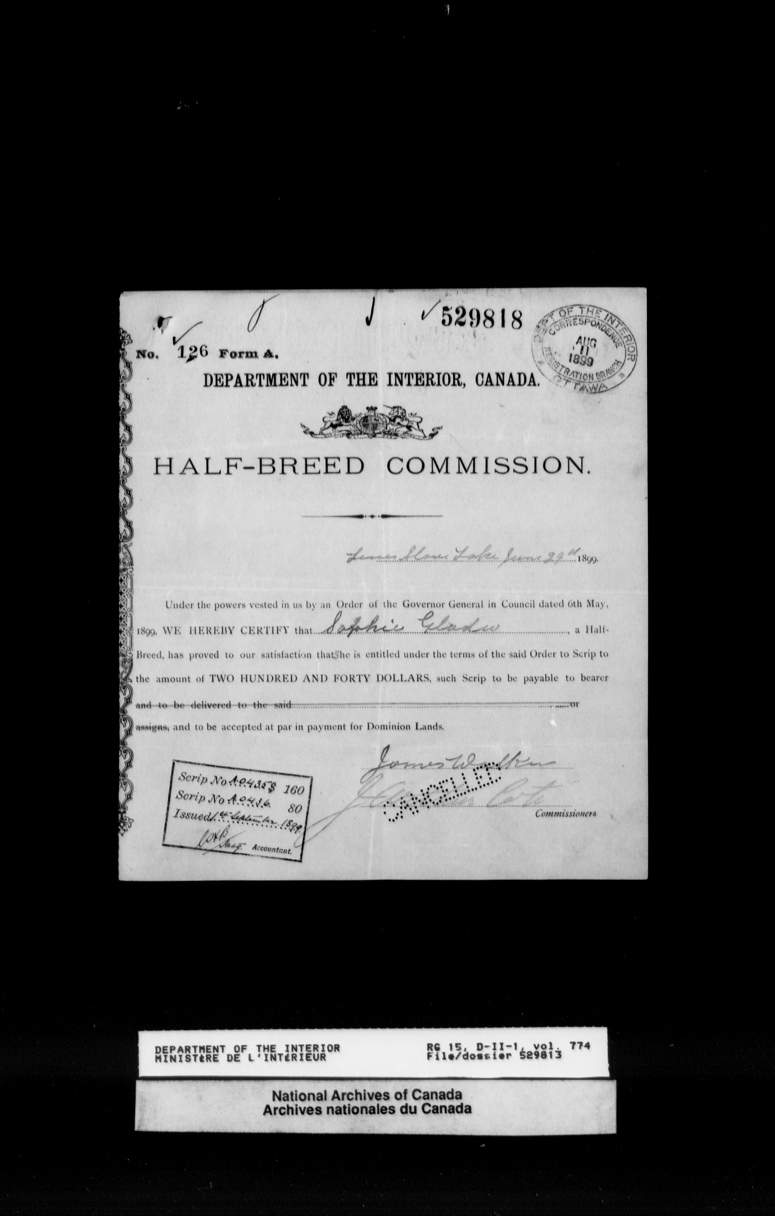 Central registry subject files created by the Dominion Lands Branch - 12521
