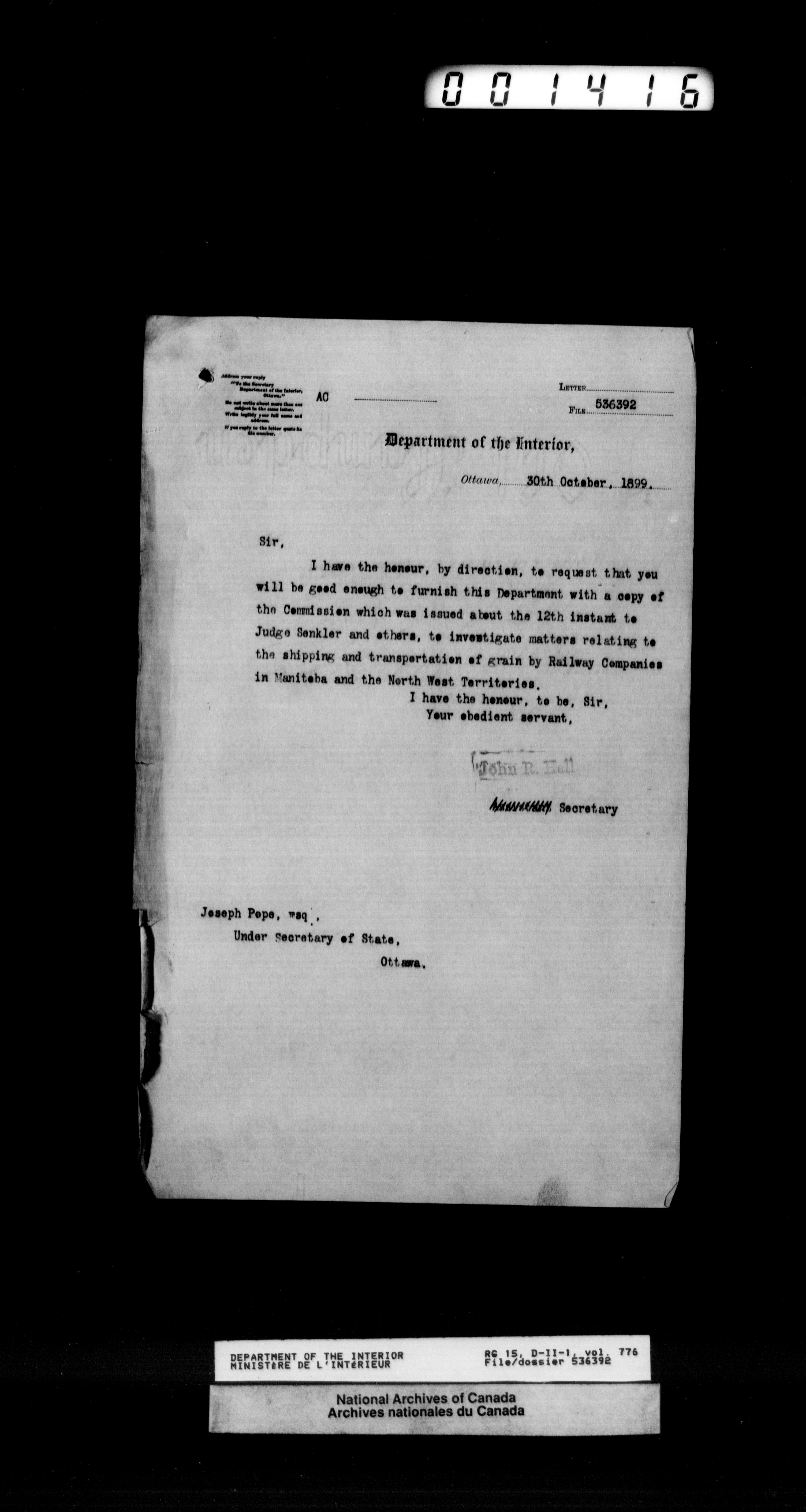 Central registry subject files created by the Dominion Lands Branch - 12523