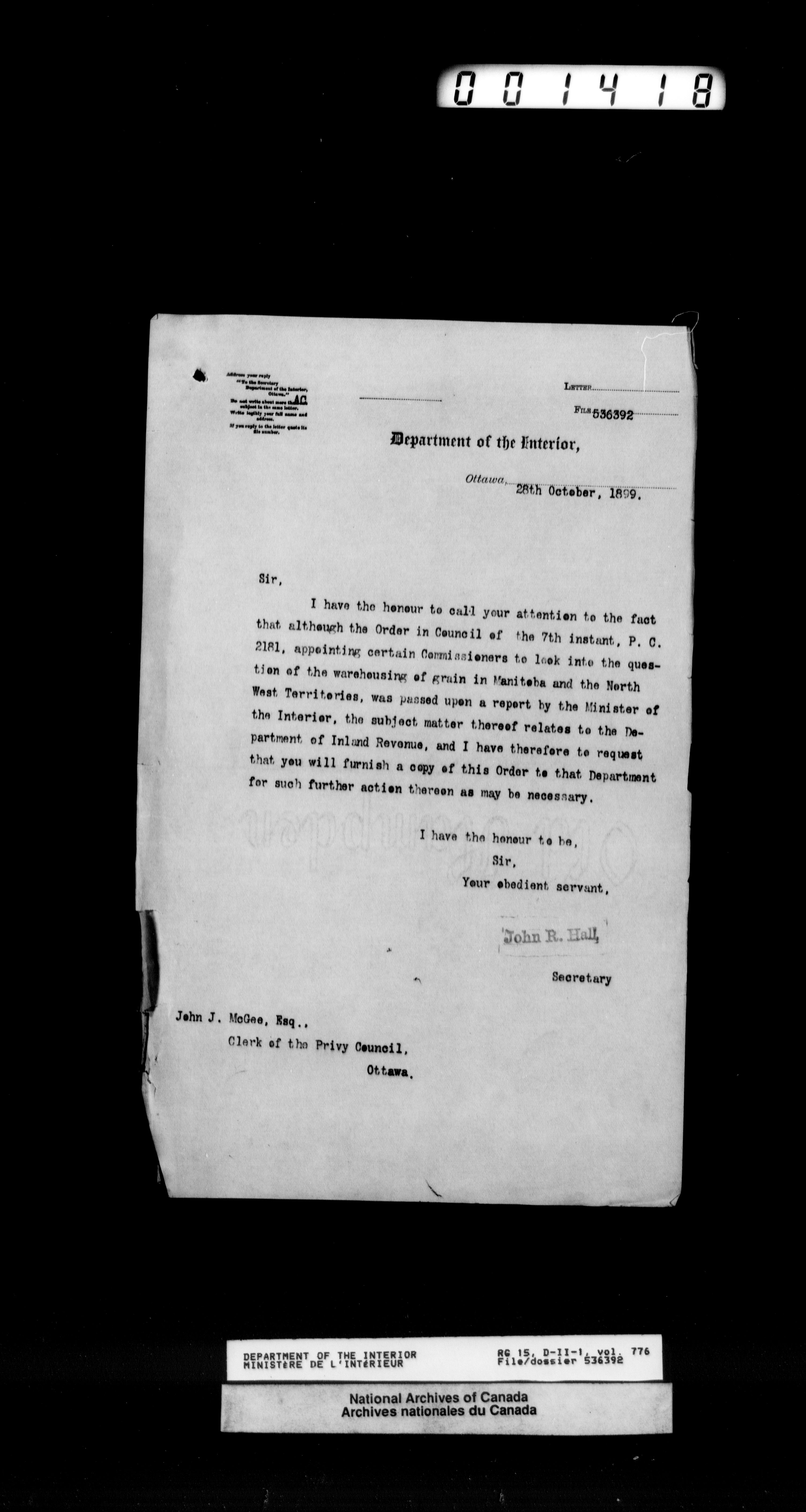 Central registry subject files created by the Dominion Lands Branch - 12523