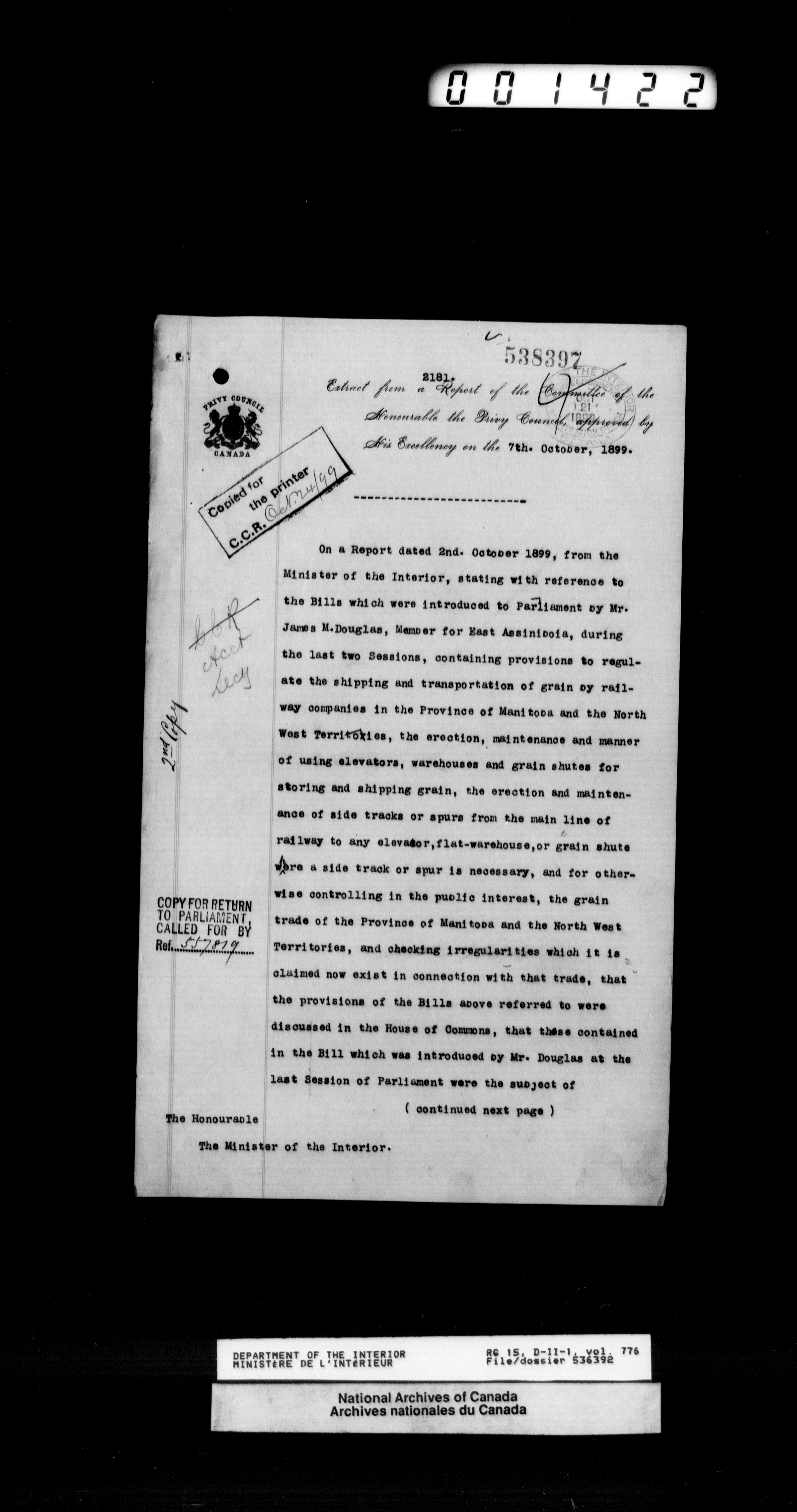 Central registry subject files created by the Dominion Lands Branch - 12523