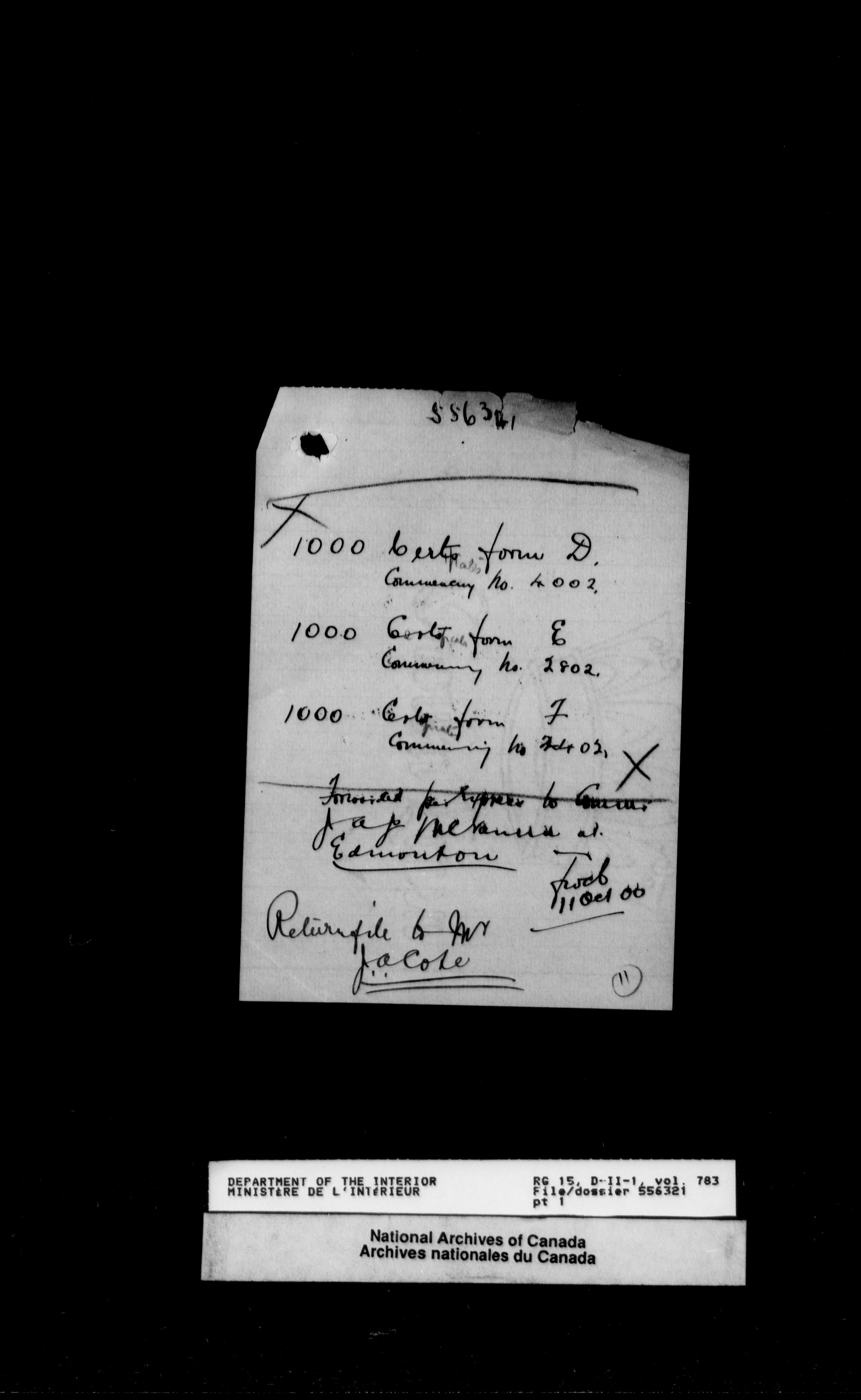 Central registry subject files created by the Dominion Lands Branch - 12530
