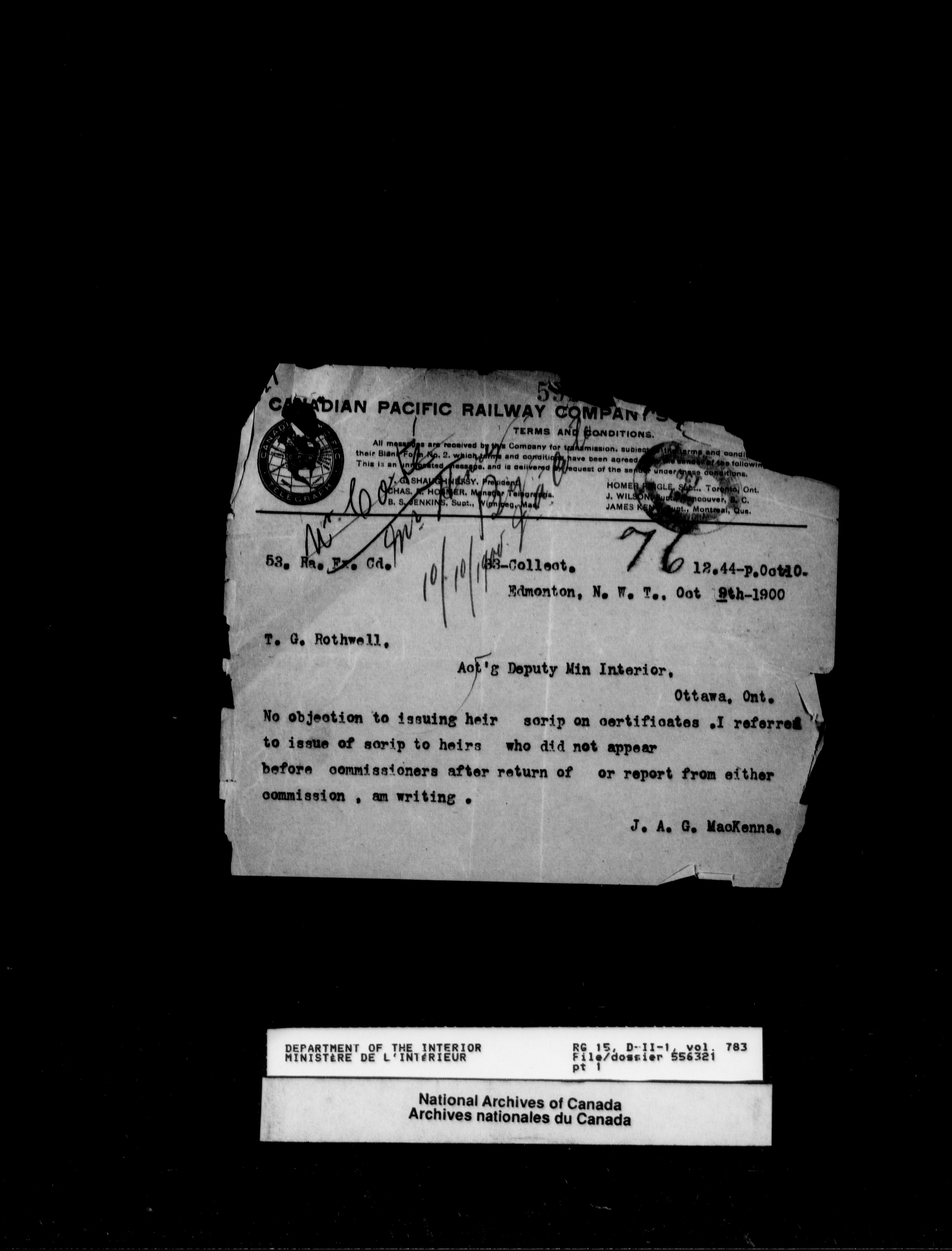 Central registry subject files created by the Dominion Lands Branch - 12530