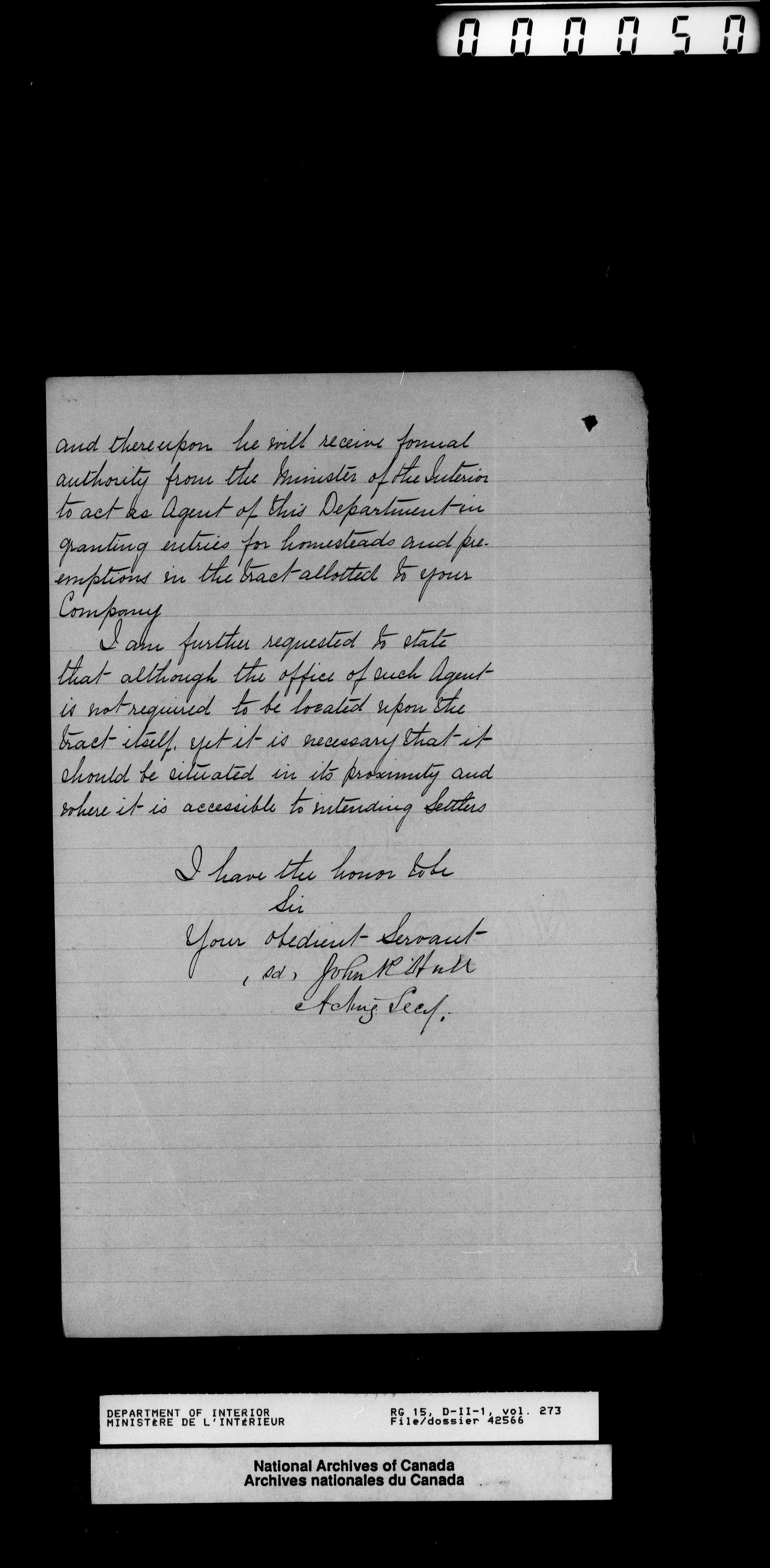 Central registry subject files created by the Dominion Lands Branch - 12539