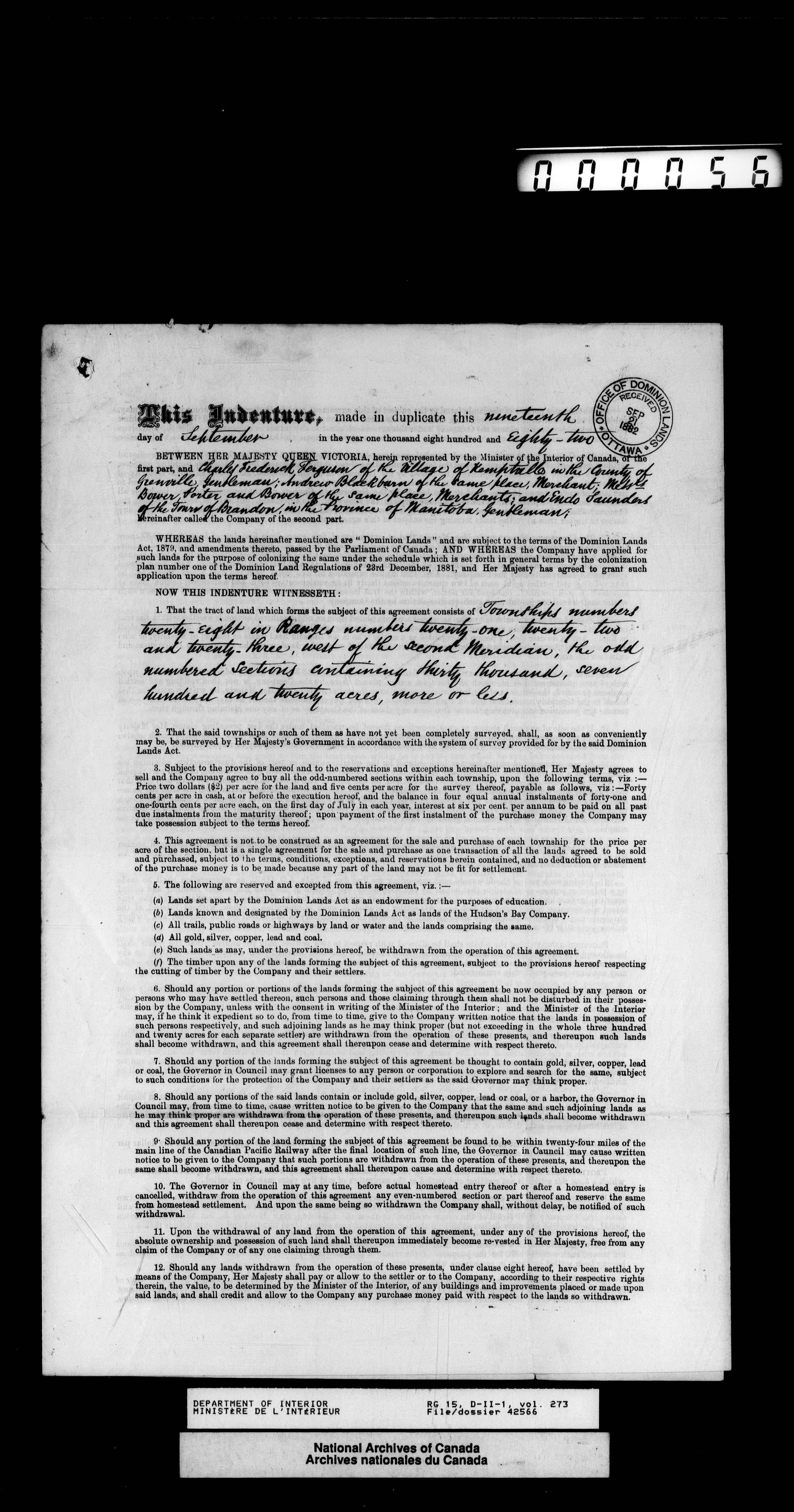 Central registry subject files created by the Dominion Lands Branch - 12539
