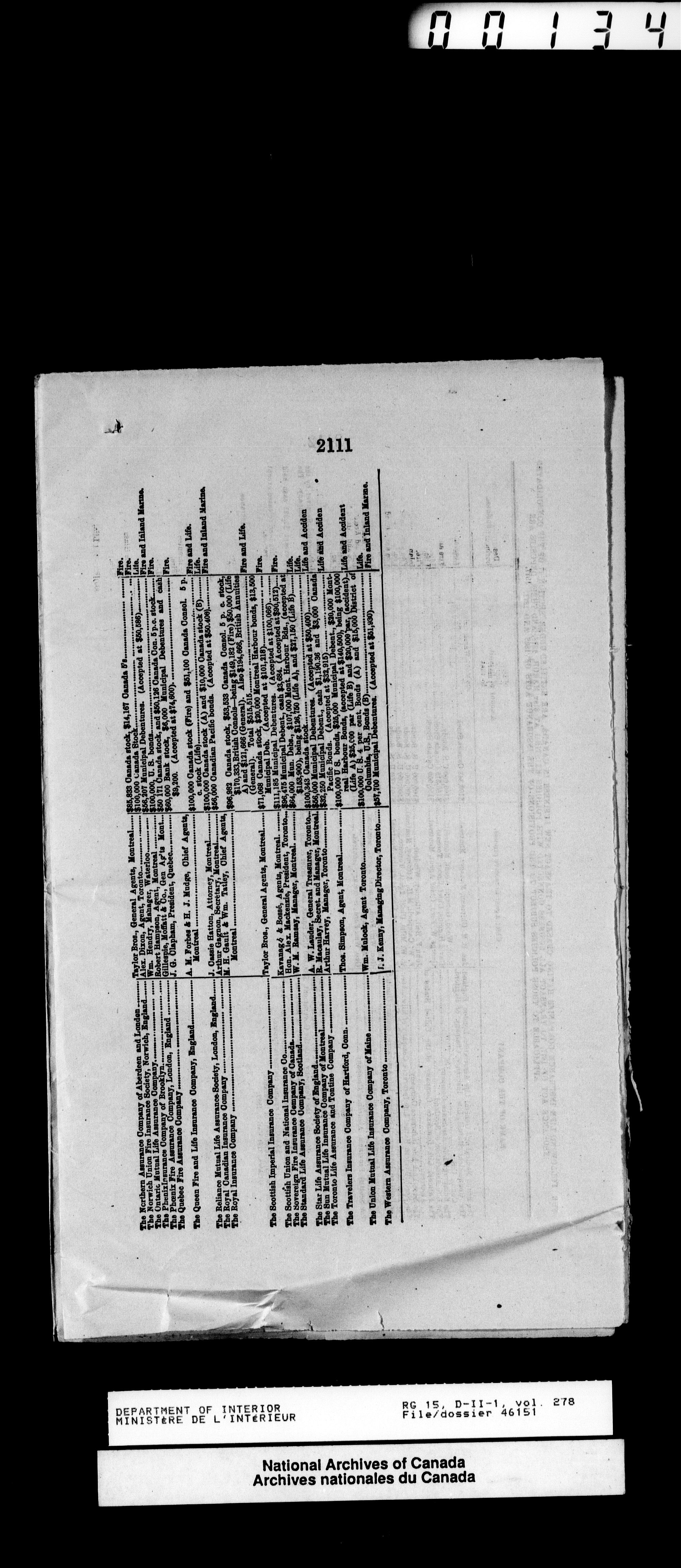 Department of Interior, Dominion Lands Branch, Headquarters Correspondence, 1871-1946